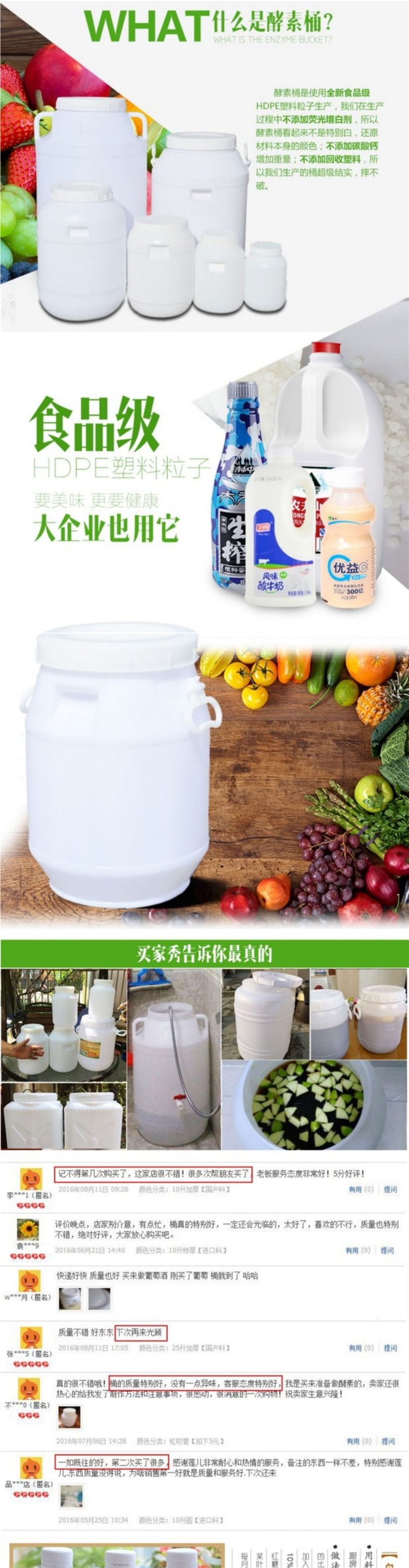 발효 버킷 식품 등급 플라스틱 효소 버킷 물 저장 버킷 뚜껑 꿀 버킷 와인 버킷 밀봉 된 양동이 두꺼운 큰 양동이