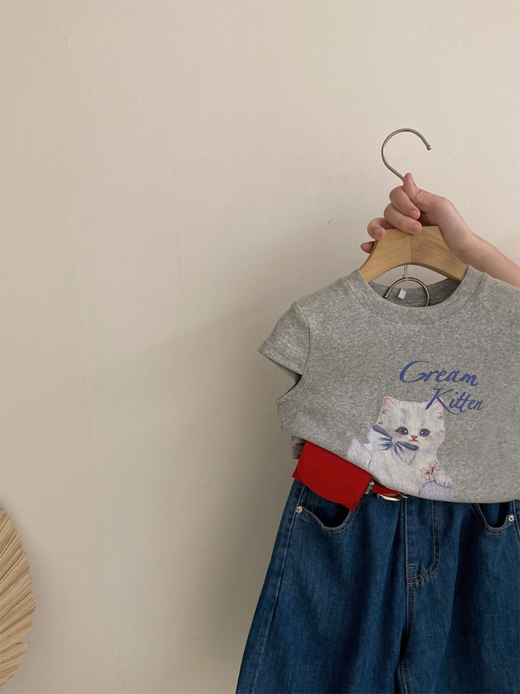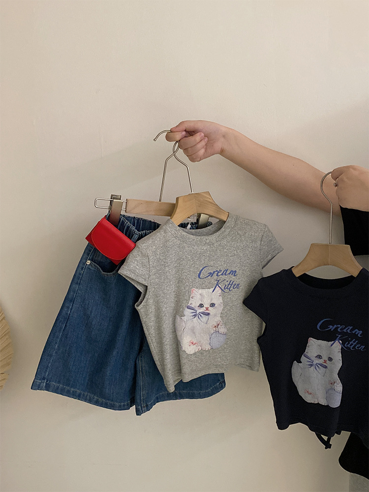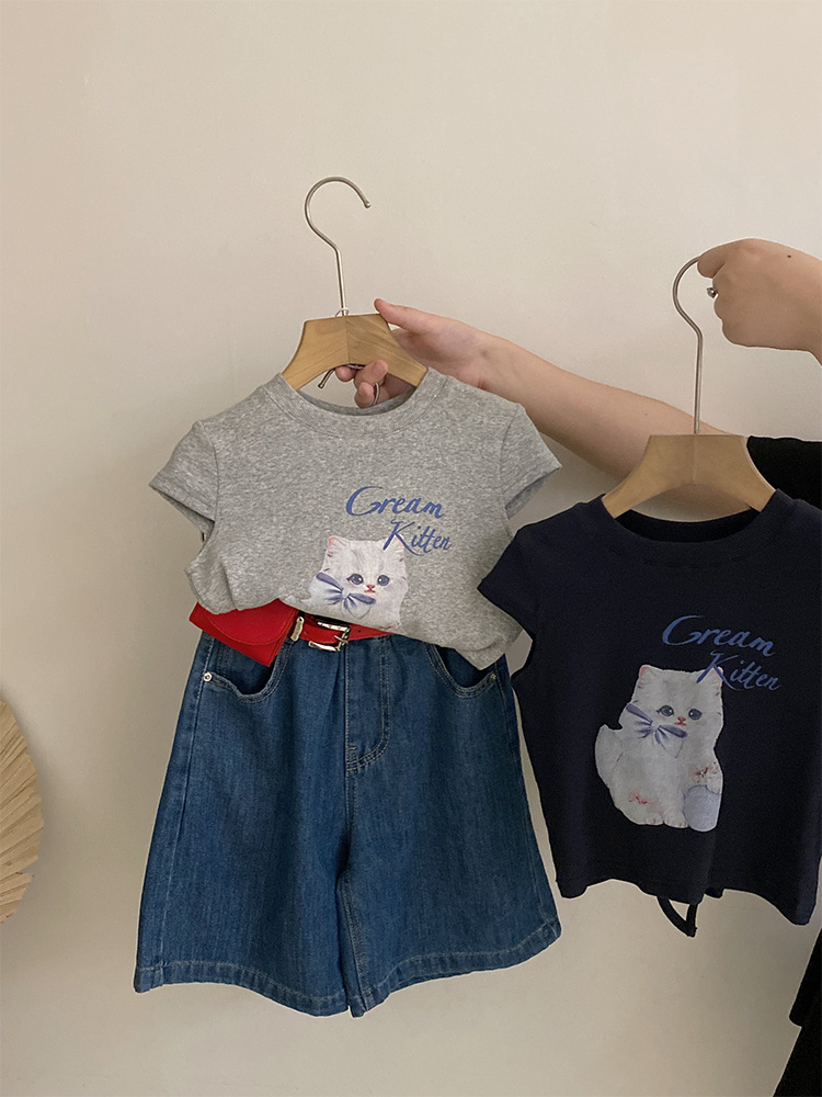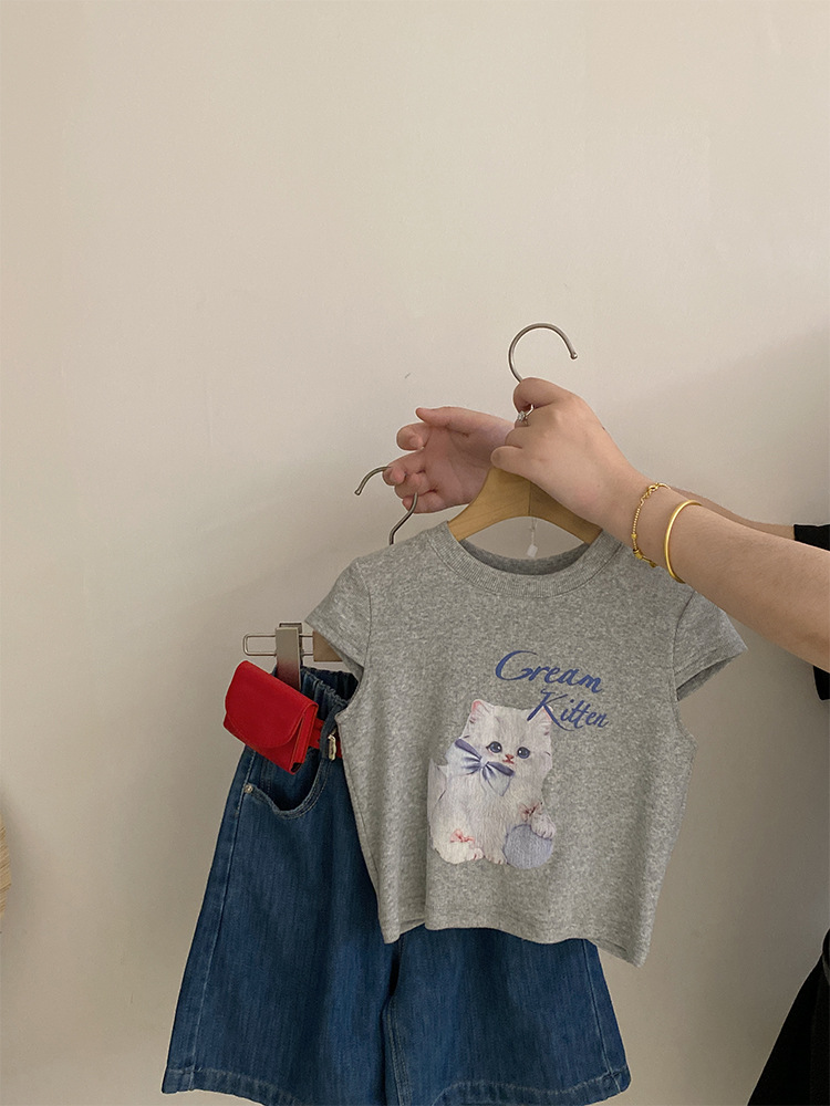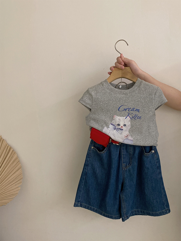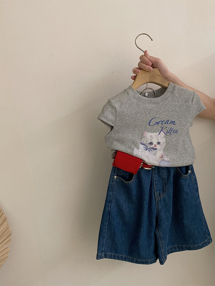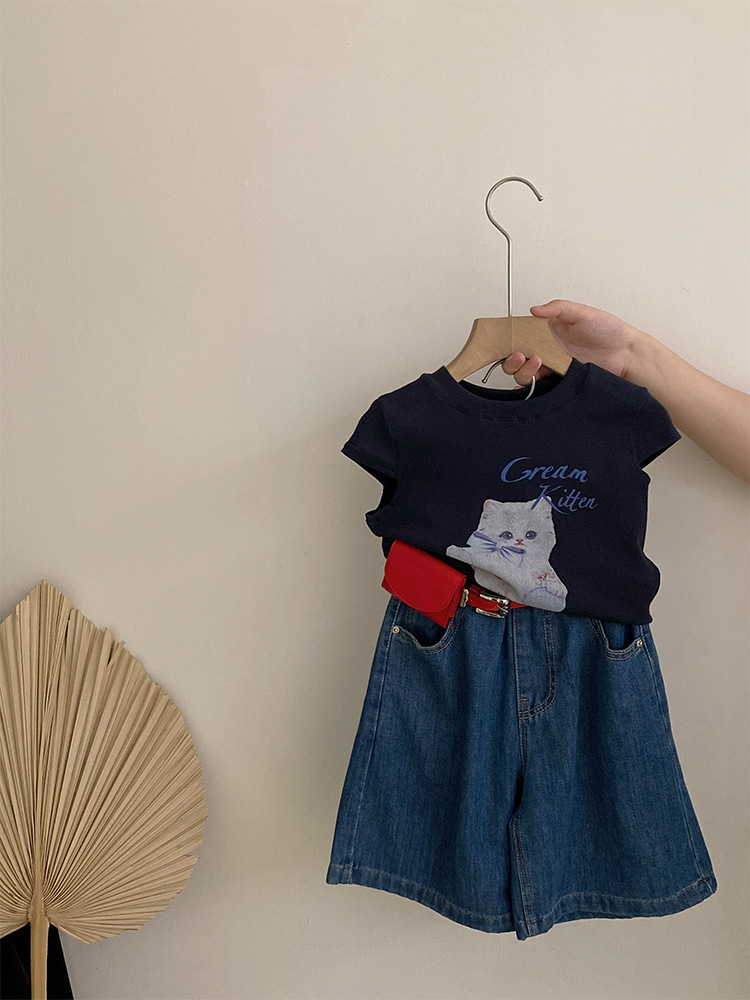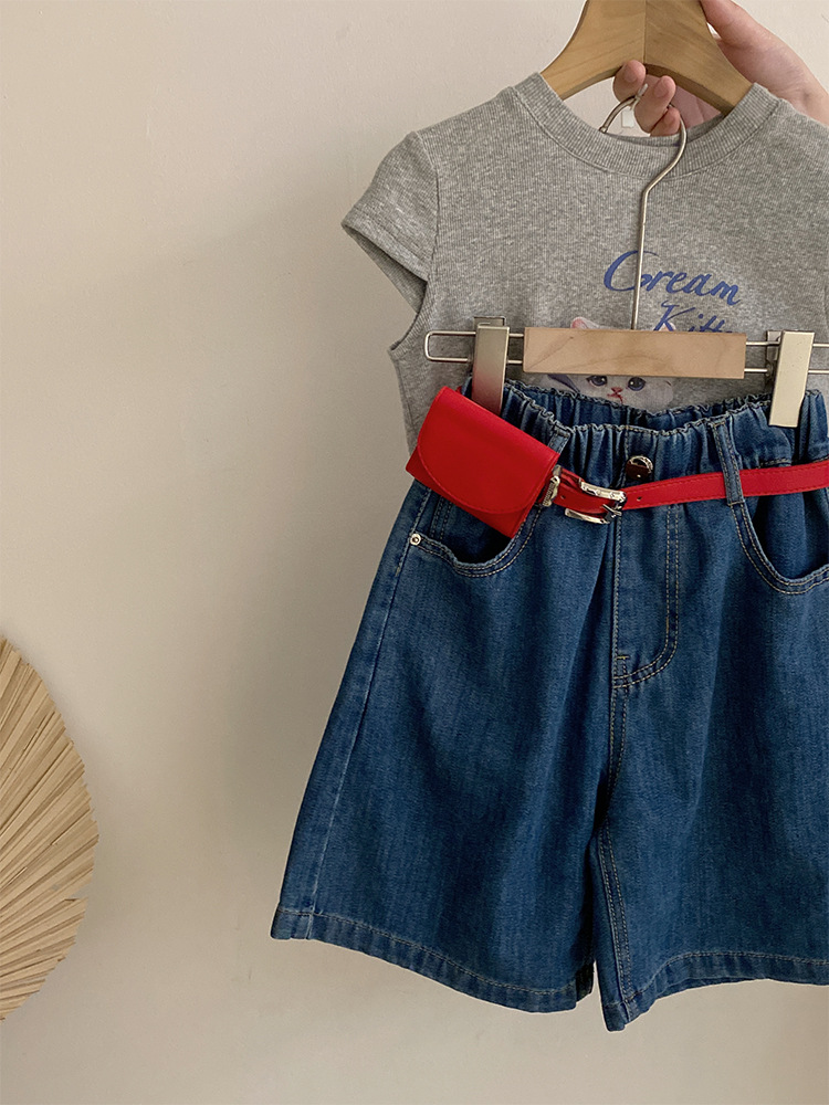 여자 여름 착용 세트 2025 새로운 스타일 중첩 어린이 반팔 티셔츠 걸스 여름 데님 바지 투피스 트렌디스토어 가기