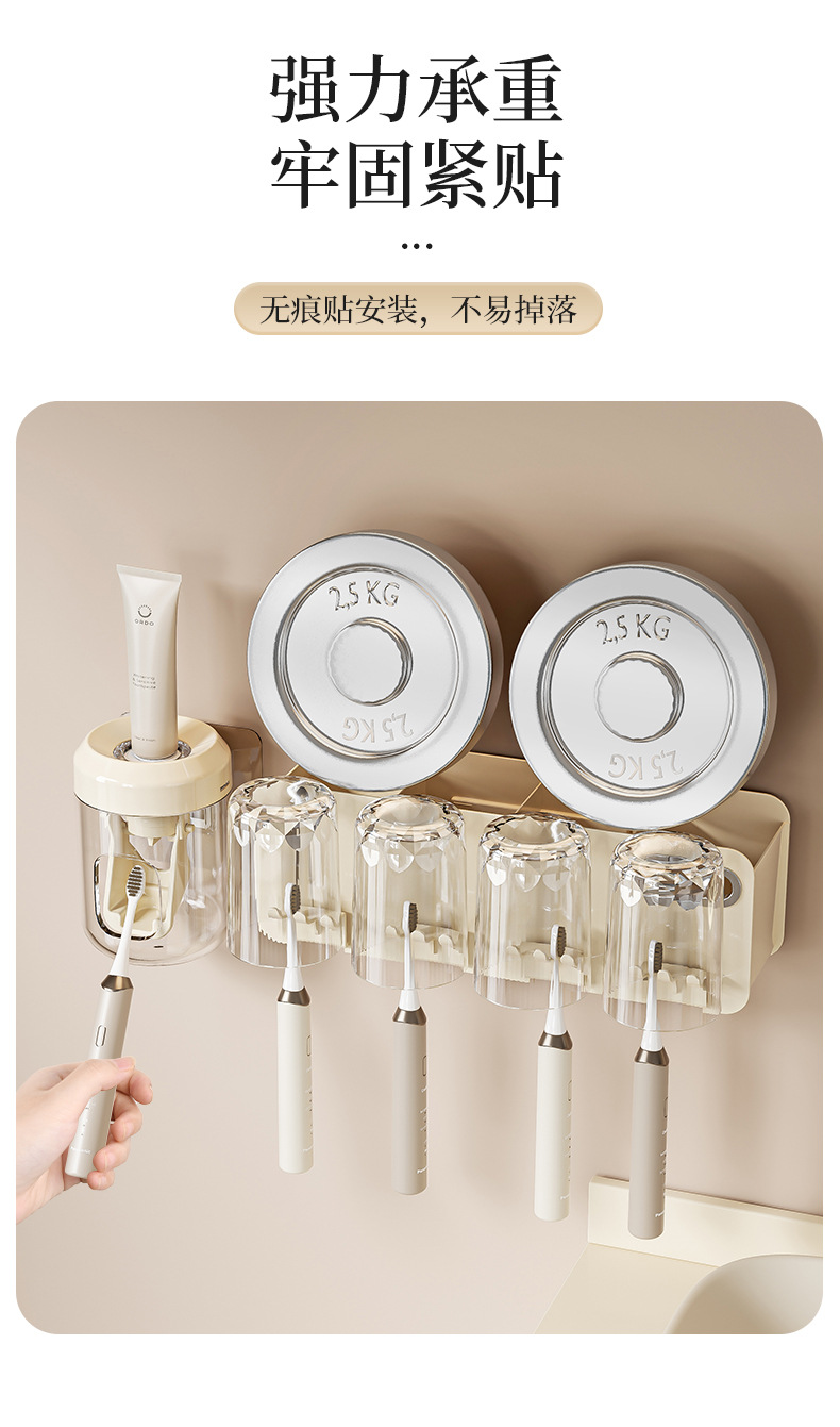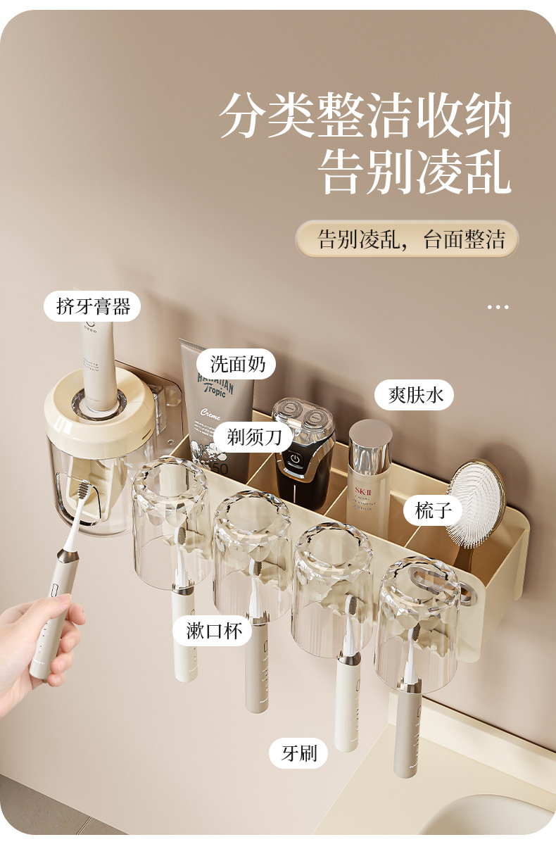 칫솔 랙 스토리지 랙 화장실 교수형 치약 랙 가글 컵 구멍이없는 칫솔 랙 벽스토어 가기