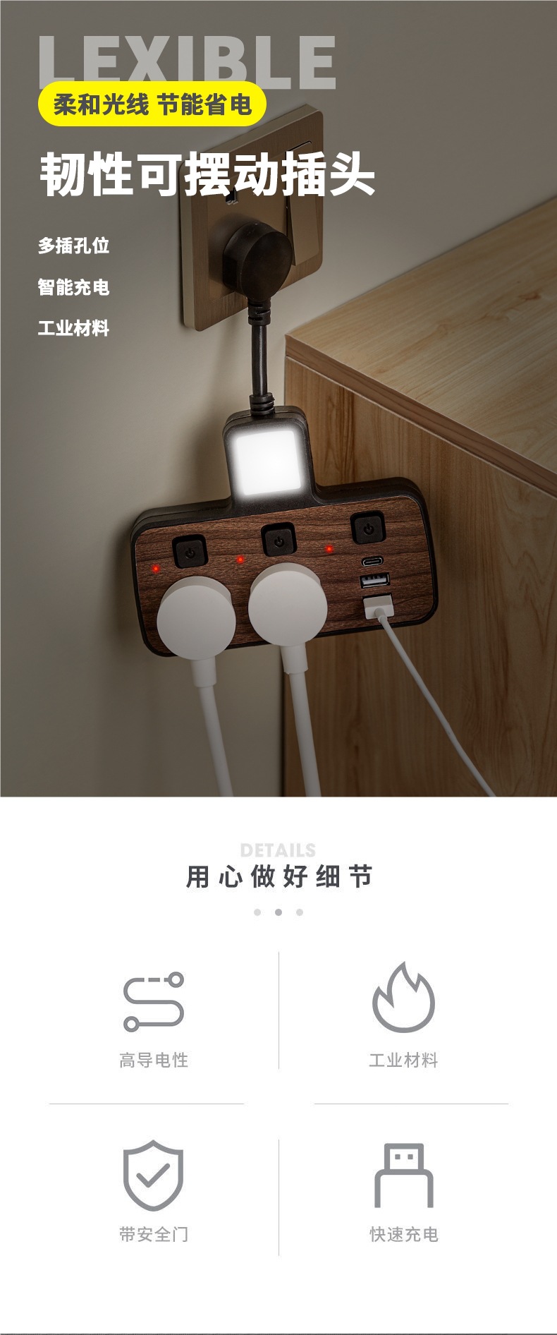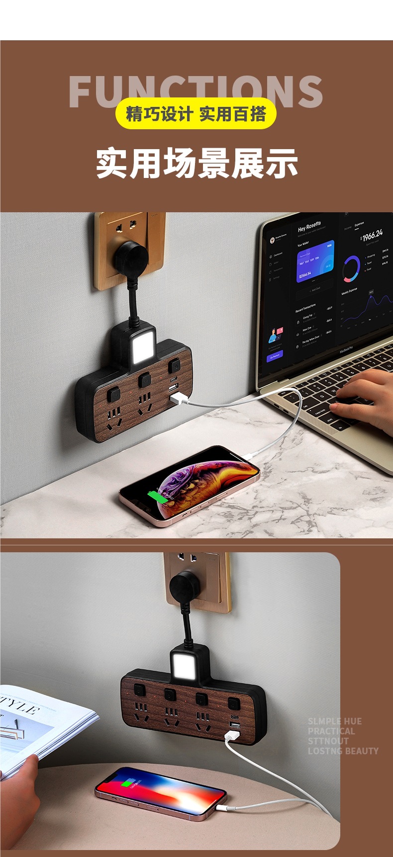 우드 그레인 소켓 다기능 컨버터 전원 확장 플러그 패치 패널 1 ~ 2 개의 멀티 홀 인터페이스 패널