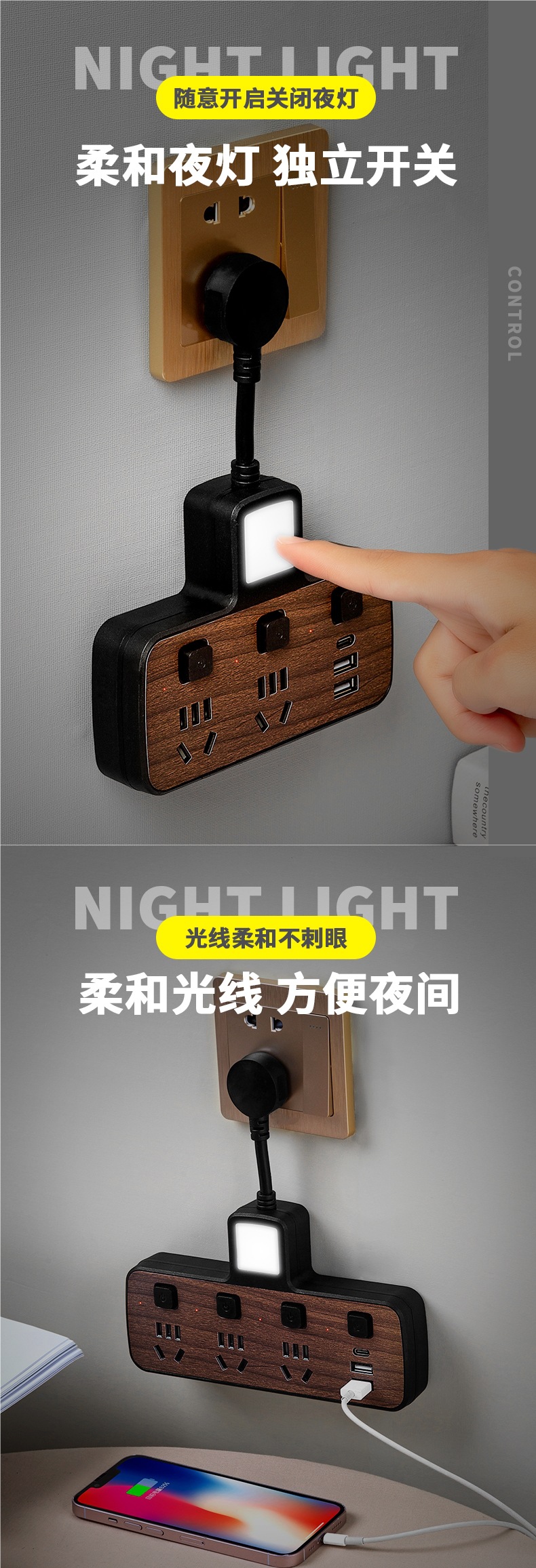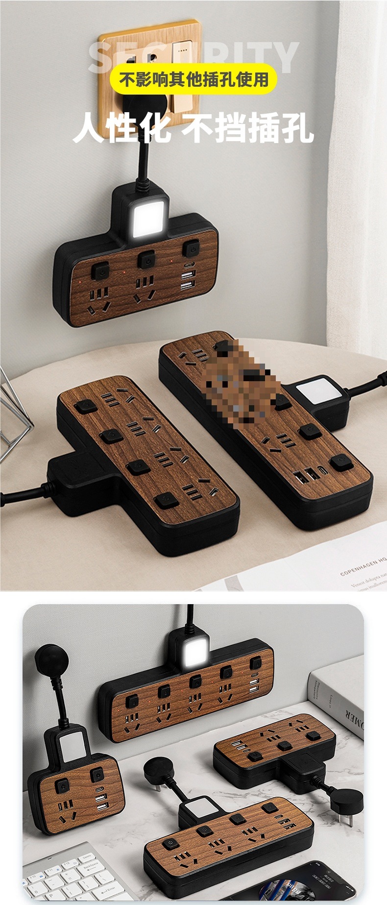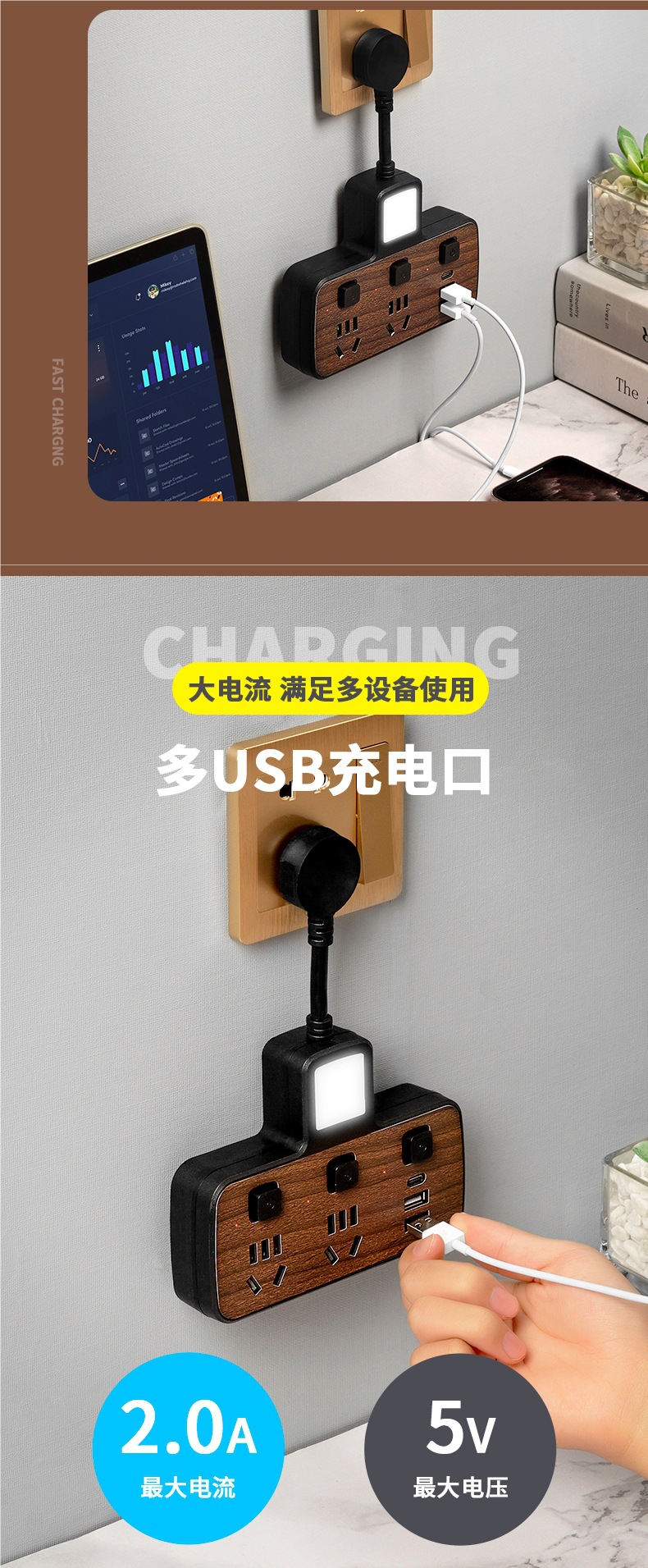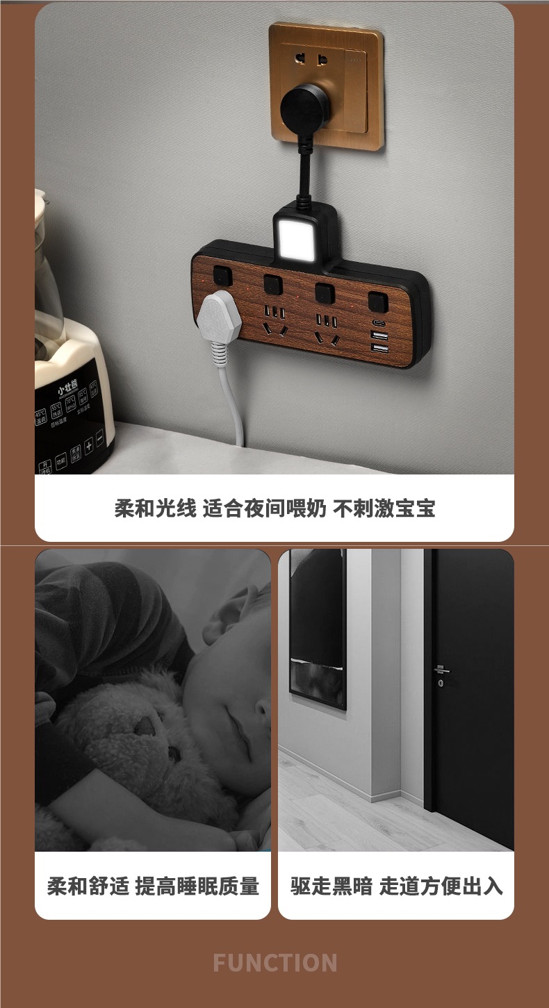 우드 그레인 소켓 다기능 컨버터 전원 확장 플러그 패치 패널 1 ~ 2 개의 멀티 홀 인터페이스 패널스토어 가기