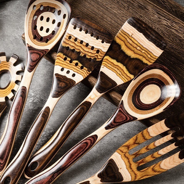 가정용 솔리드 우드 식기 다채로운 우드 주방 나무 삽 나무 목제 주방용품 고온 내성 냄비 밥 숟가락 피자 삽 일본 스타일