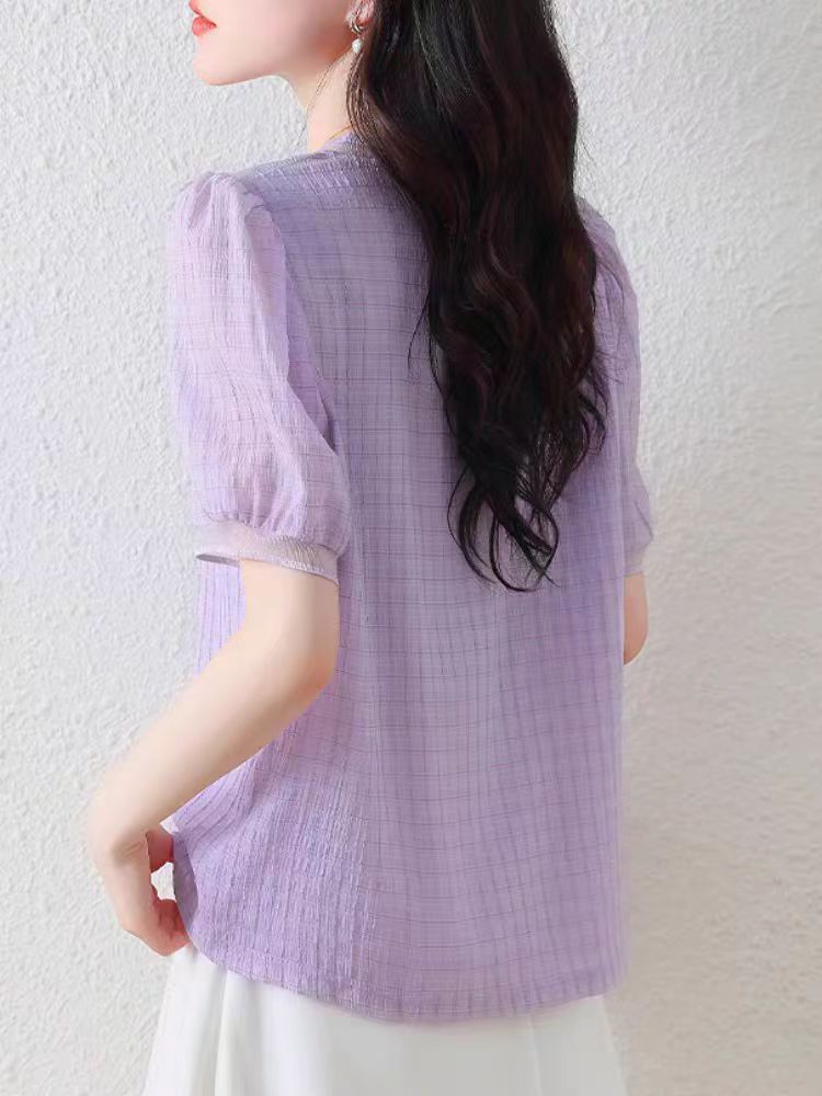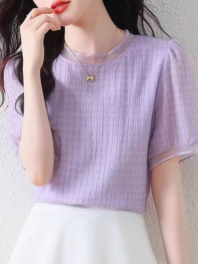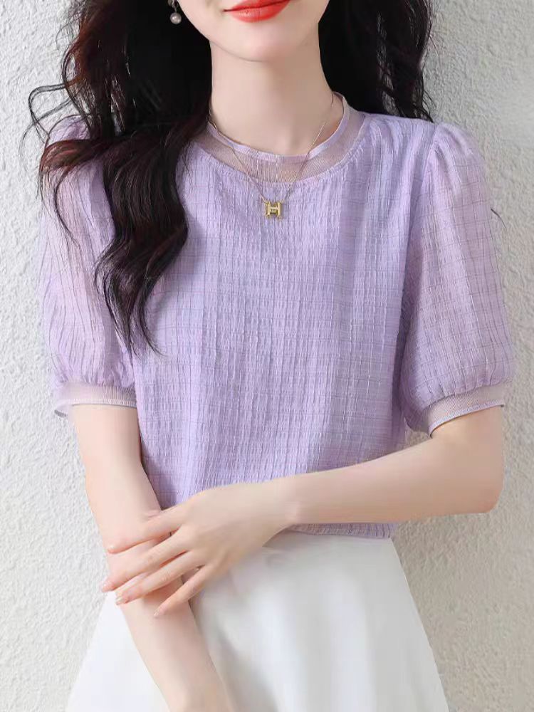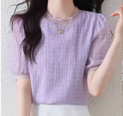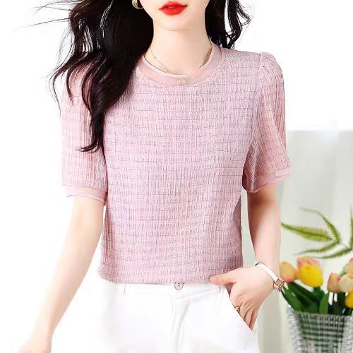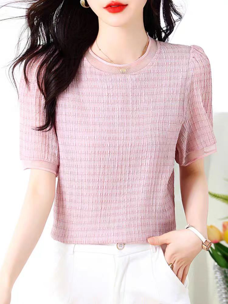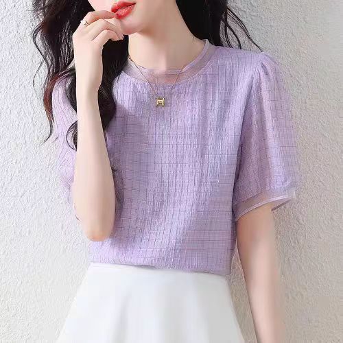 2025년 여름 여성을 위한 쉬폰 반팔 티셔츠 새로운 스타일 통근 패션 슬리밍 작은 라운드 넥 다용도 탑