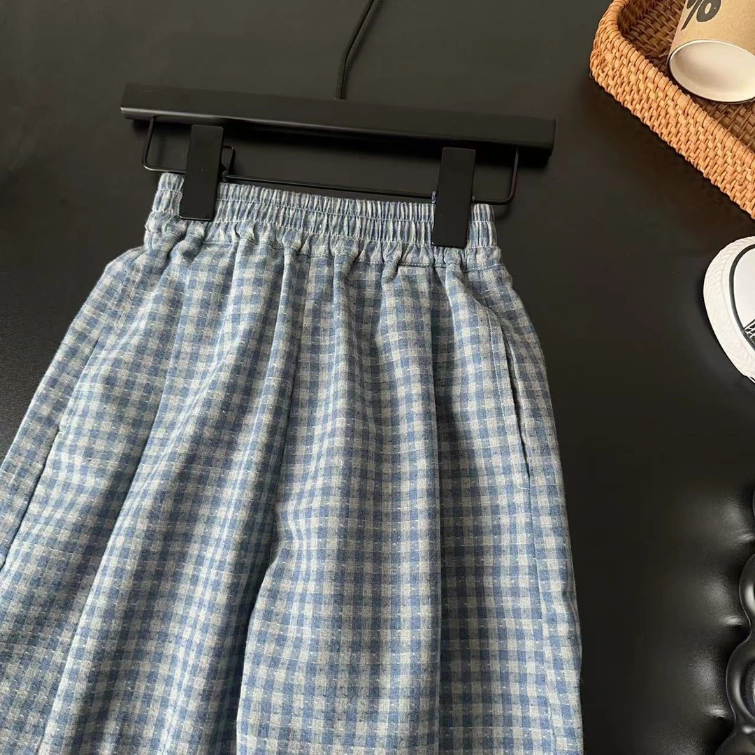 스팟상품! 아동복 아동 모기 방지 바지 2025 여름 유행 격자 무늬 블루머 소년 소녀 바지
