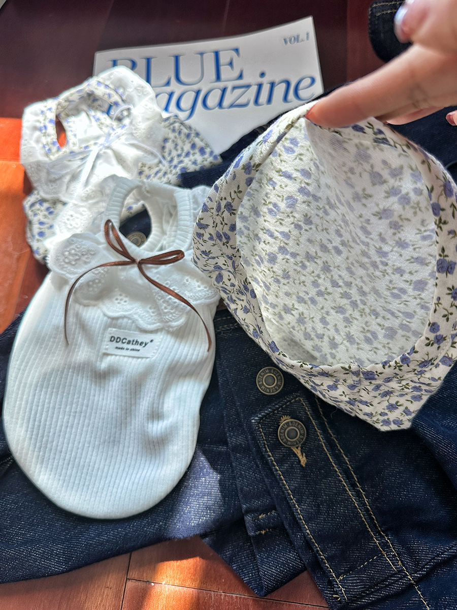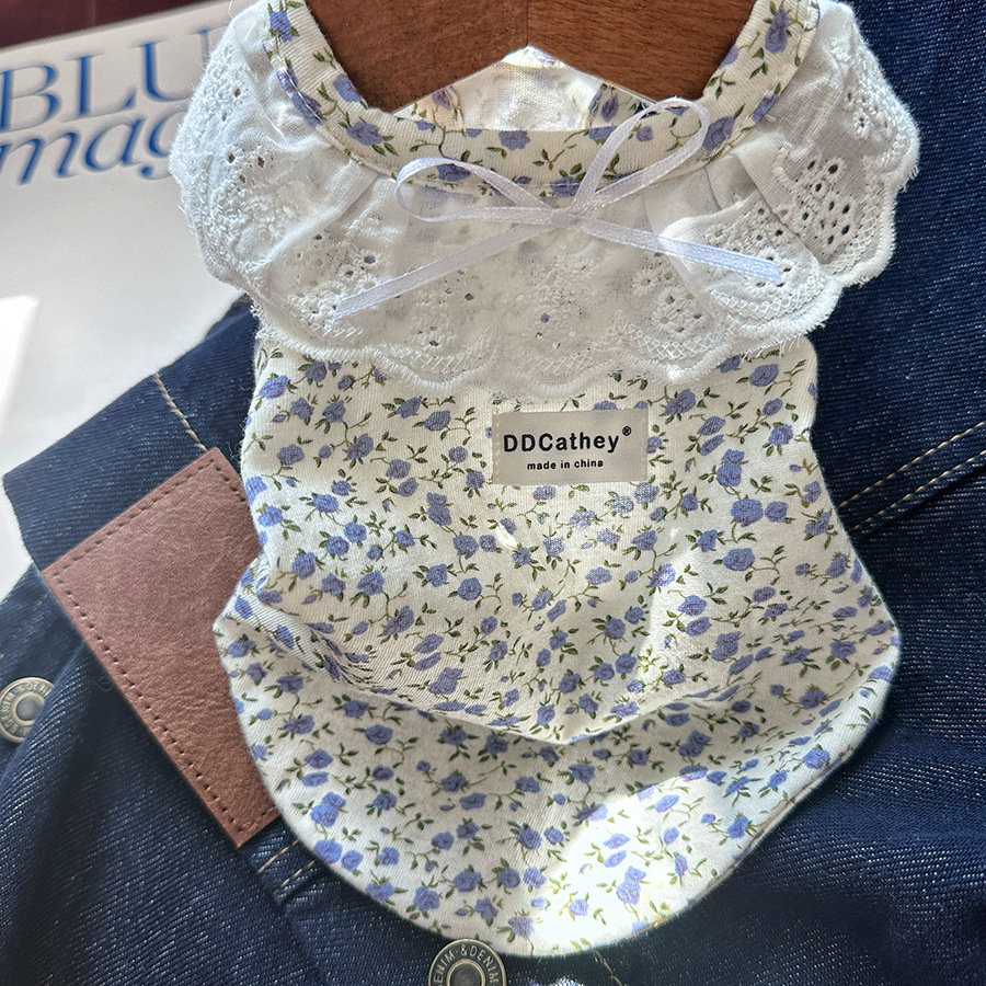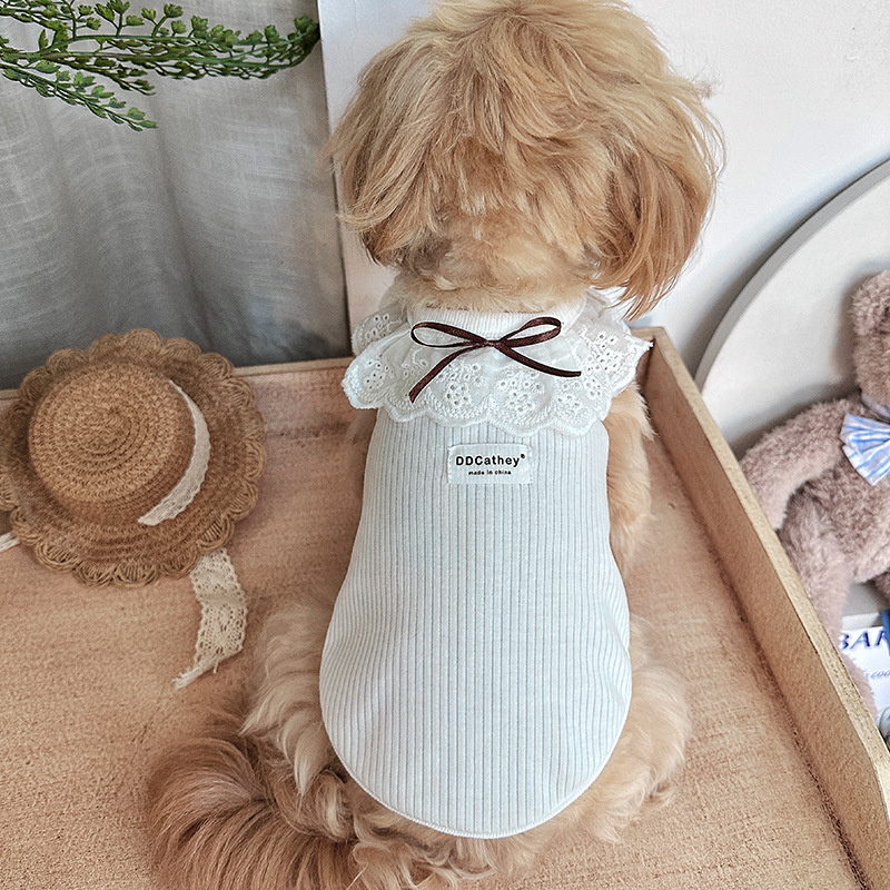 Bao Baoma 순면 꽃 니트 bm 스타일 애완 동물 레이스 티셔츠 작은 개와 고양이 봄과 여름 옷