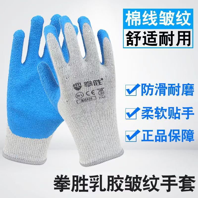 권승 E50 라텍스 두꺼운 내마모성 미끄럼 방지 면사 침지 고무 주름 방지 건설 현장용 고무장갑 다용도