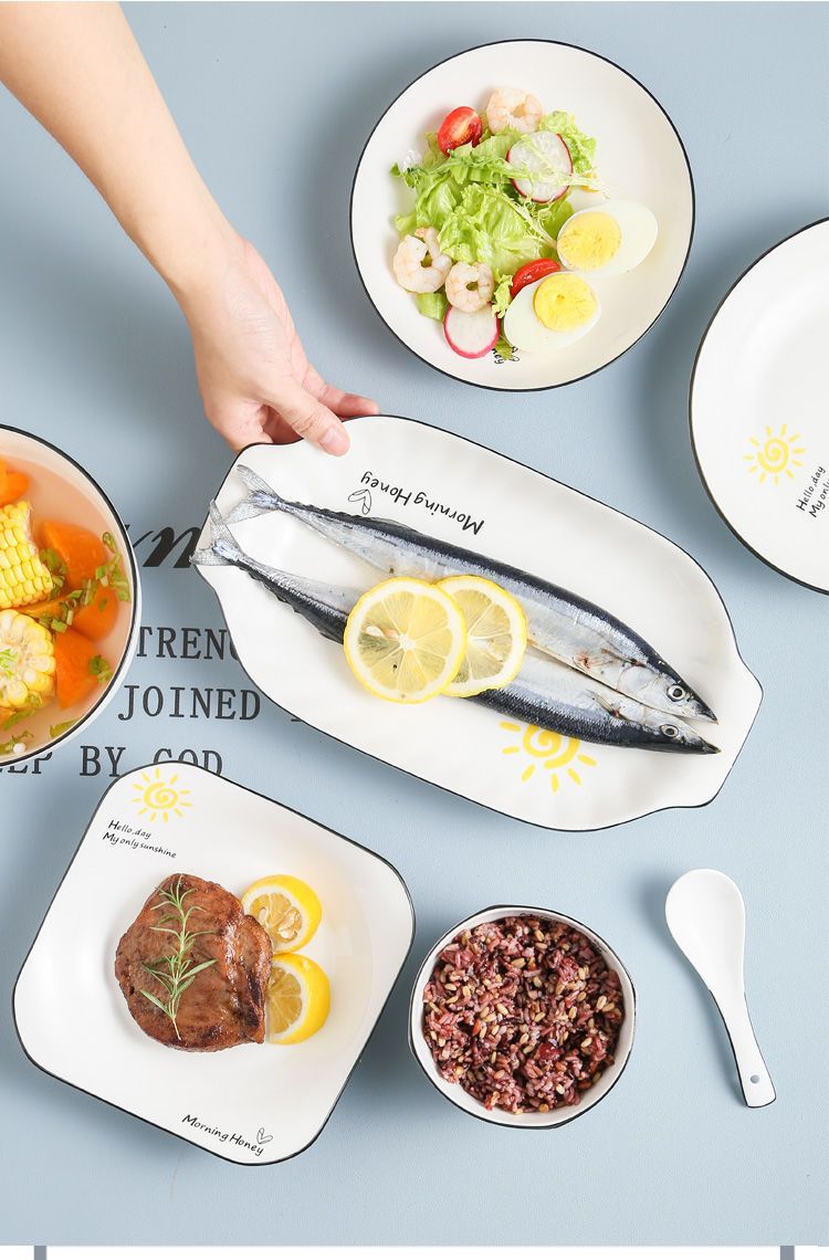 북유럽 창조적 인 식기 가정용 세라믹 접시 과일 플레이트 스퀘어 인터넷 연예인 플레이트 접시 아침 식사 접시 접시 접시