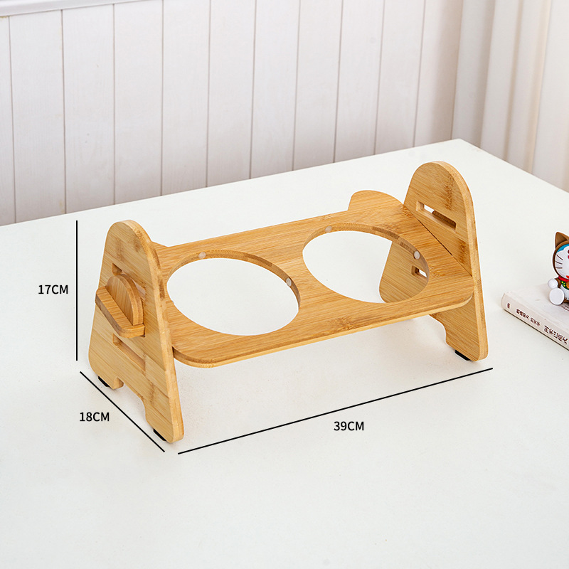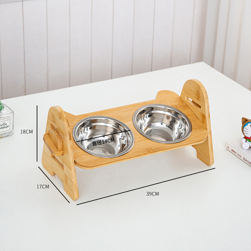 애완 동물 그릇 분리 가능한 조절 가능한 나무 프레임 고양이 그릇 나무 고양이 분지 스테인레스 스틸 더블 그릇 고양이 그릇 안티 노크 물 그릇