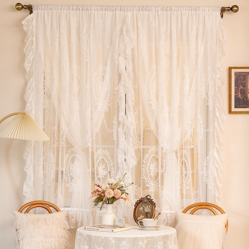 프랑스 화이트 레이스 커튼 공주 바람 더블 거즈 커튼 투명하고 불 침투성 꿈 소녀 침실 베이 창 커튼