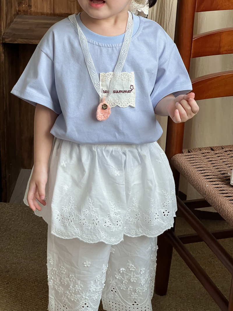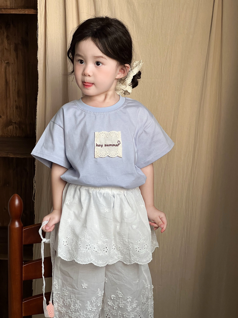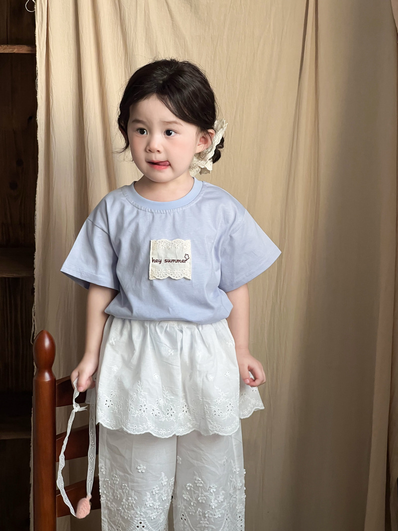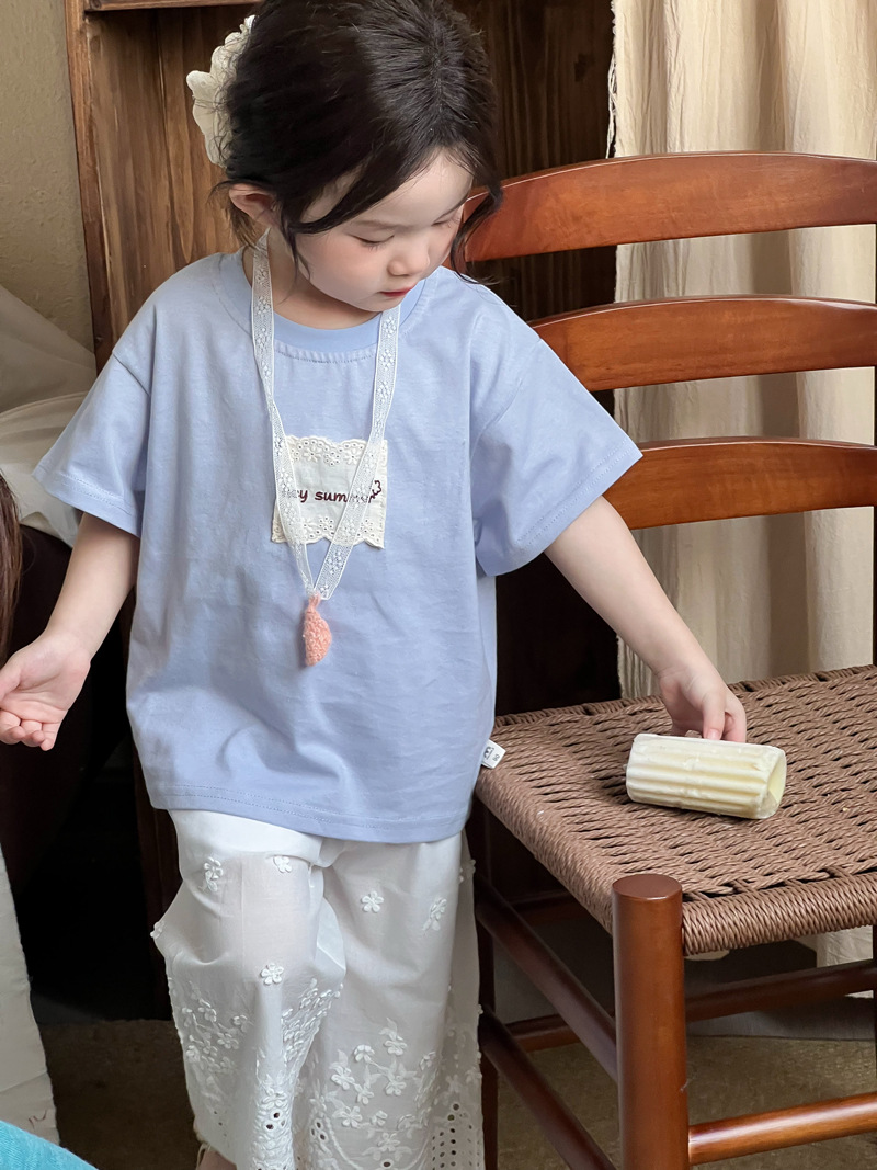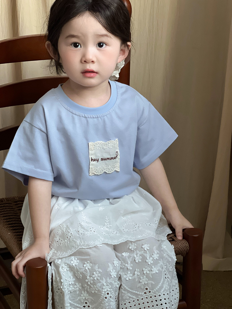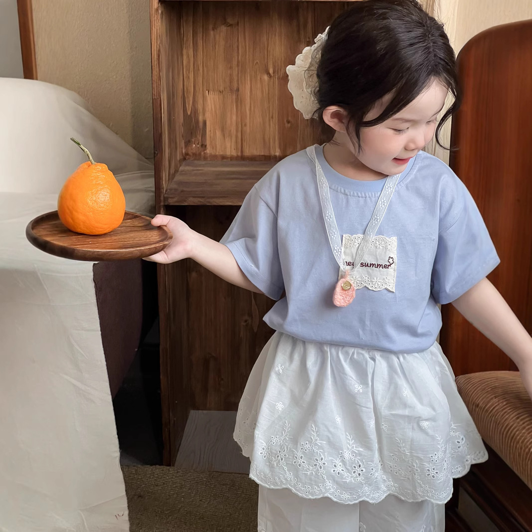2025 년 여름 새 아동복 한국 스타일 소녀 레이스 포일 반소매 어린이 편지 한국식 티셔츠