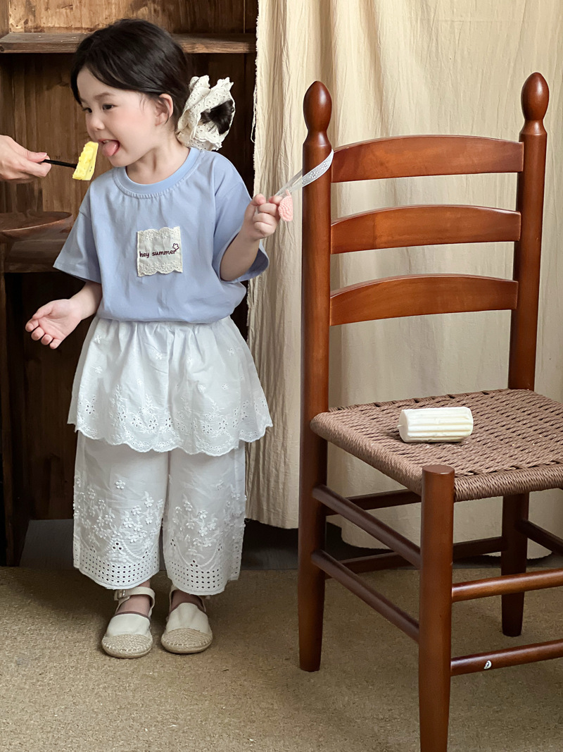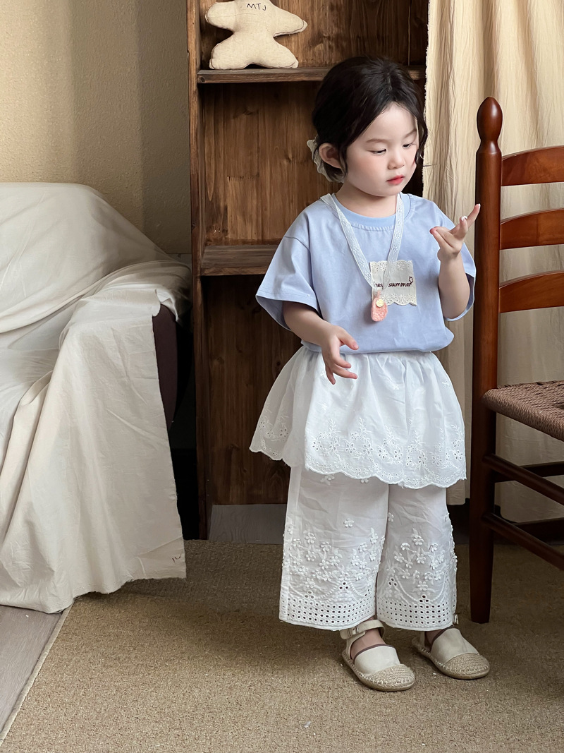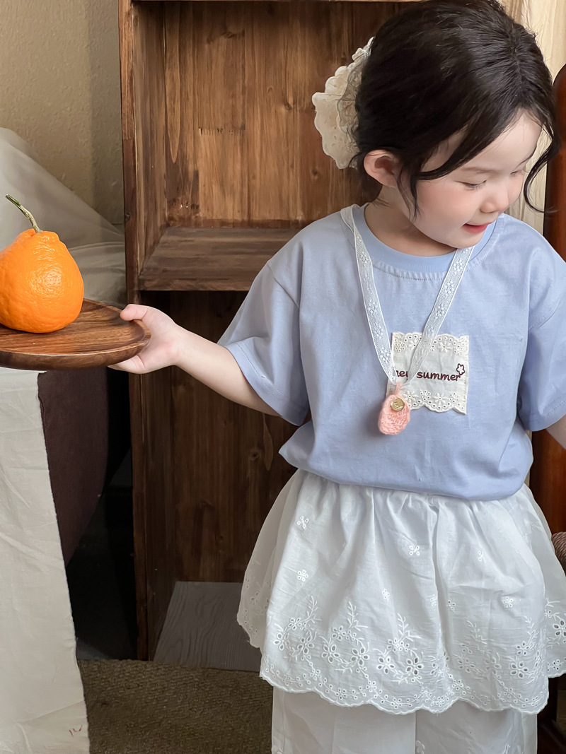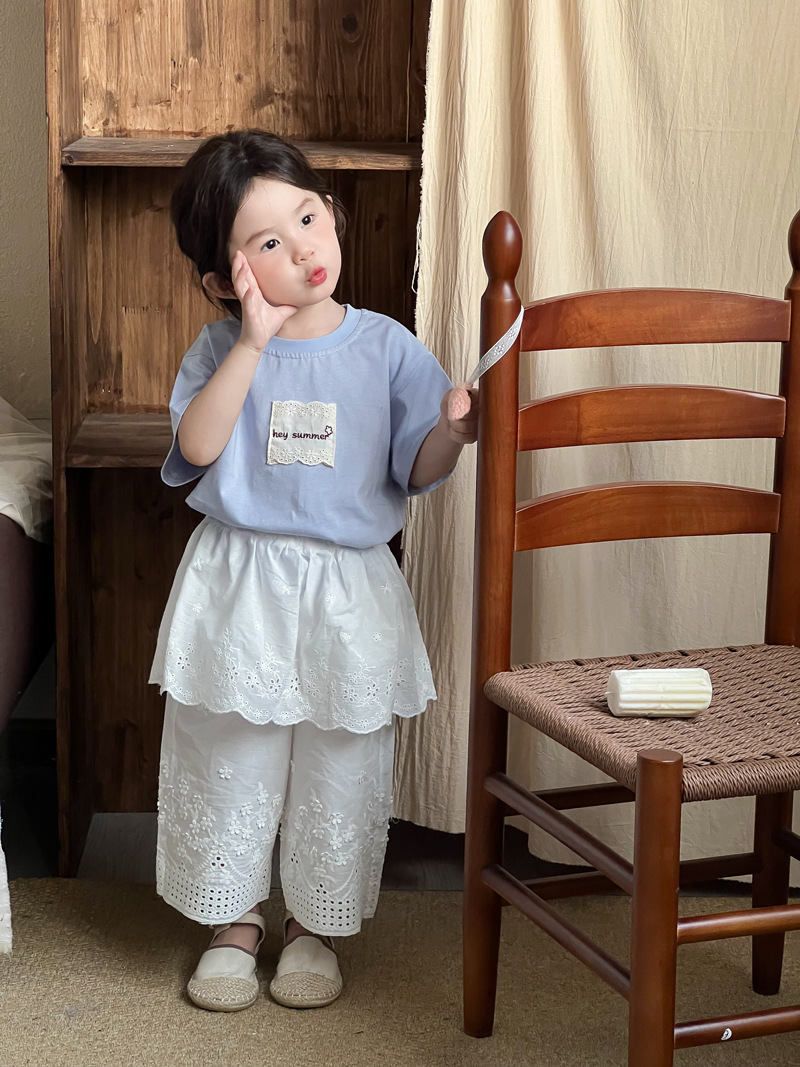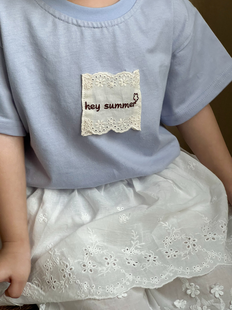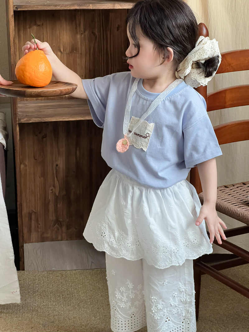 2025 년 여름 새 아동복 한국 스타일 소녀 레이스 포일 반소매 어린이 편지 한국식 티셔츠