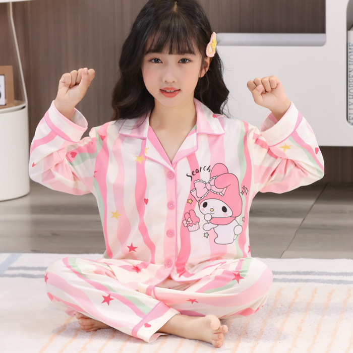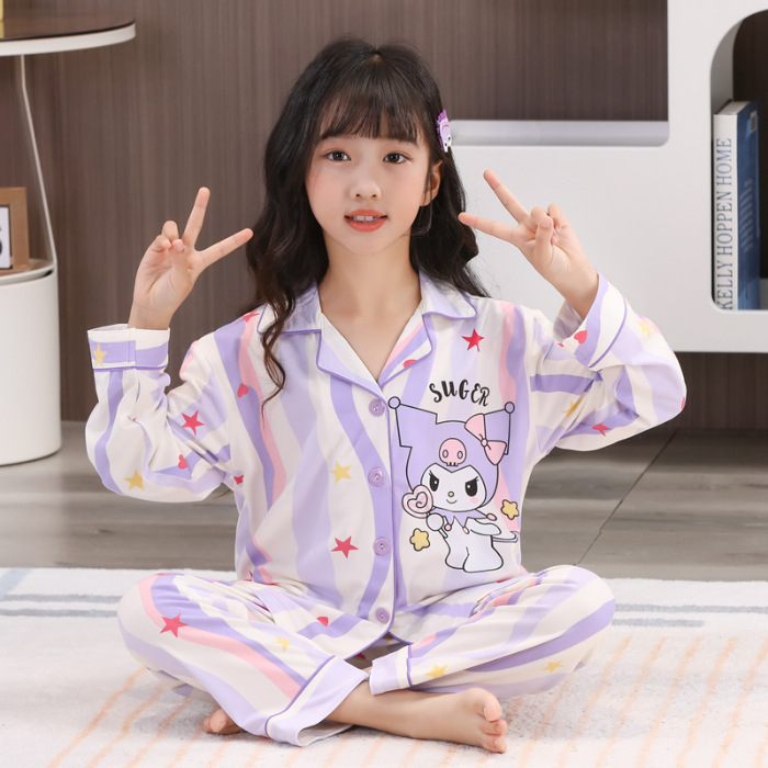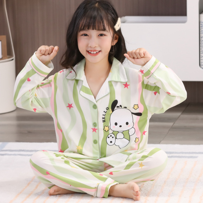 어린이 잠옷 소년 봄, 가을 긴팔 얇은 모조 면화 12 세 중대형 소년 여름 만화 가정 의류 세트
