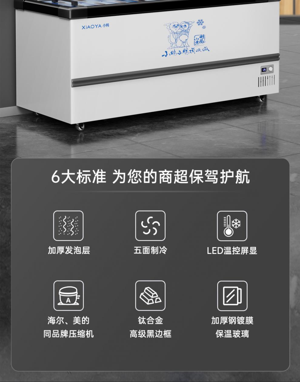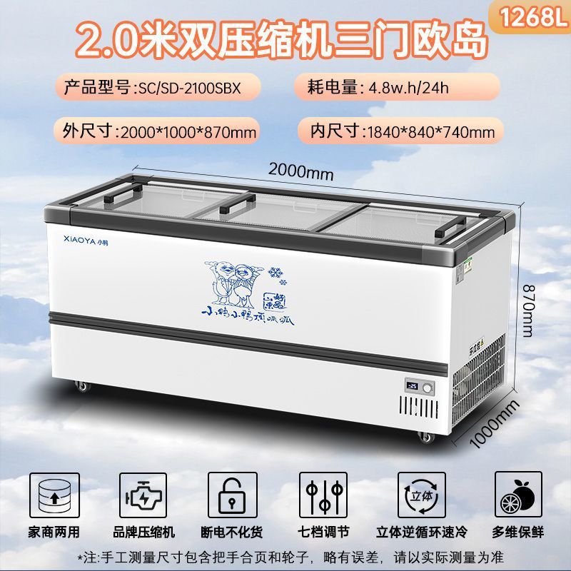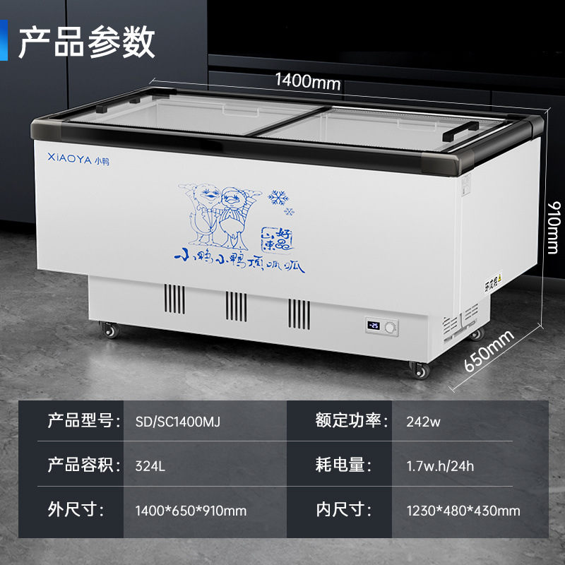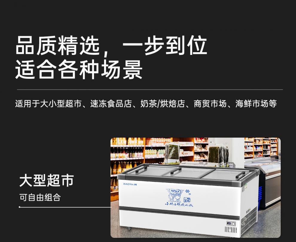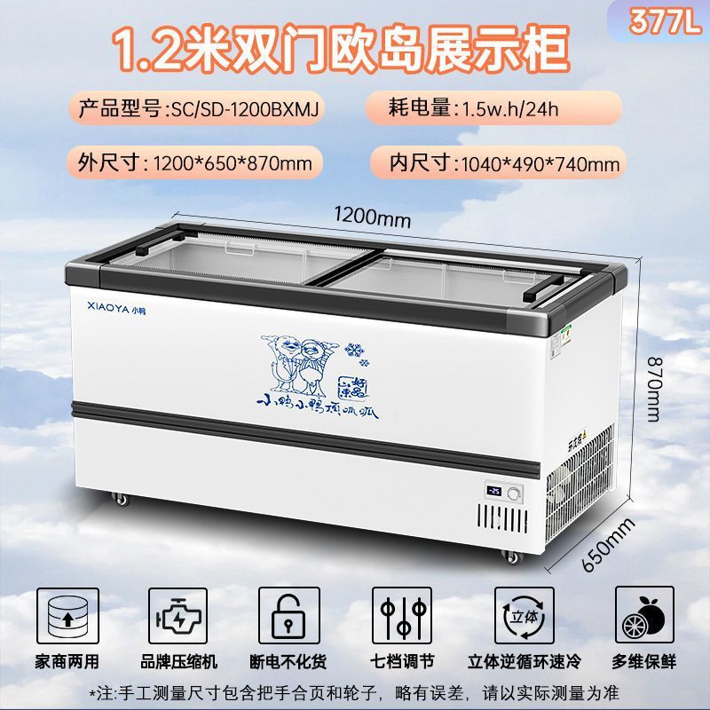 Xiaoya 브랜드 냉동고 상업용 슈퍼마켓 대용량 디스플레이 캐비닛 단일 온도 이중 온도 아이스크림 냉장 냉동고 수평 이중 용도스토어 가기