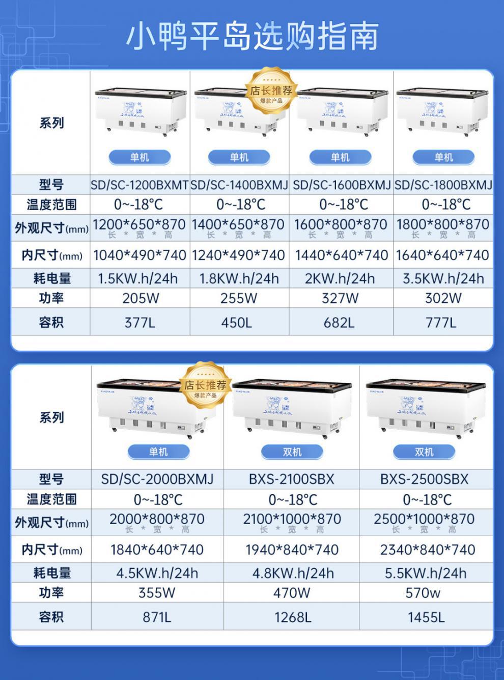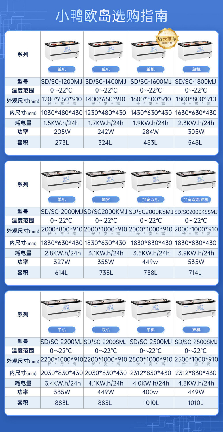• 긴 2.2m 플랫 아일랜드 쇼케이스-듀얼 압축기-고효율 급속 냉동