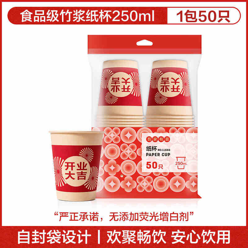 • 250ml 대나무 펄프 컵 50개 [집에 들어갈 때 행운을 빕니다]