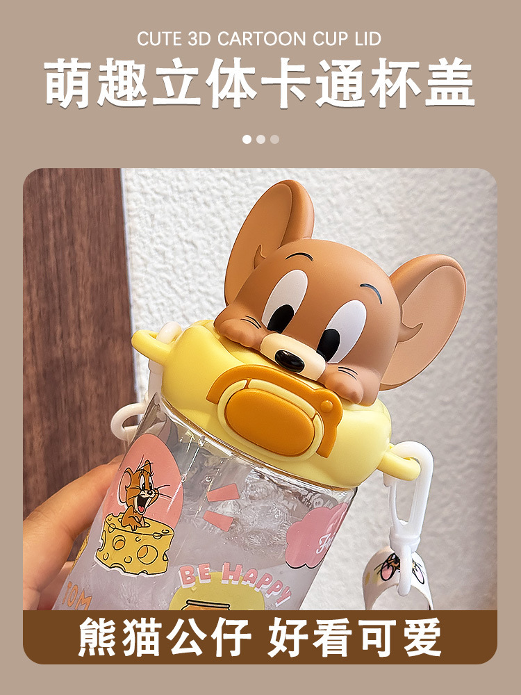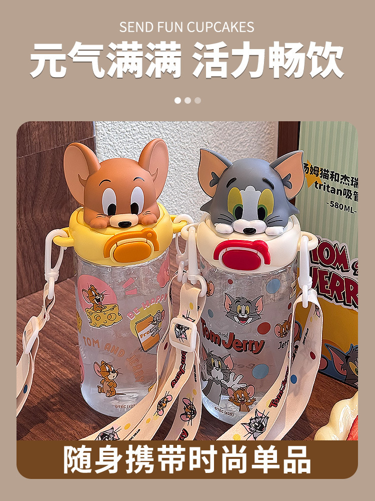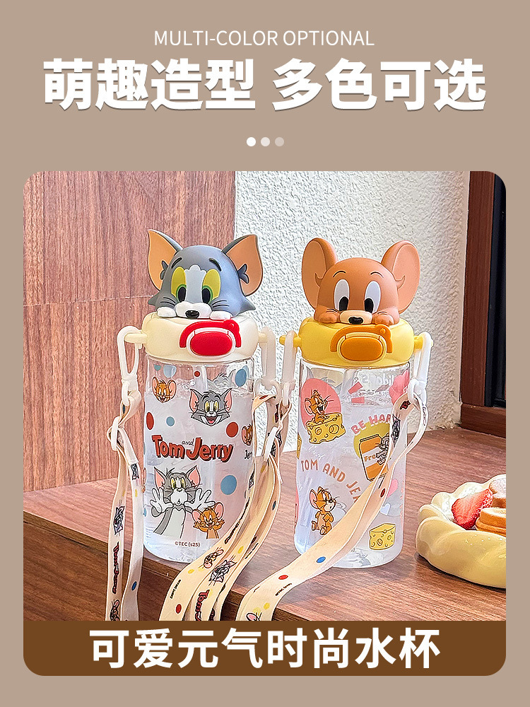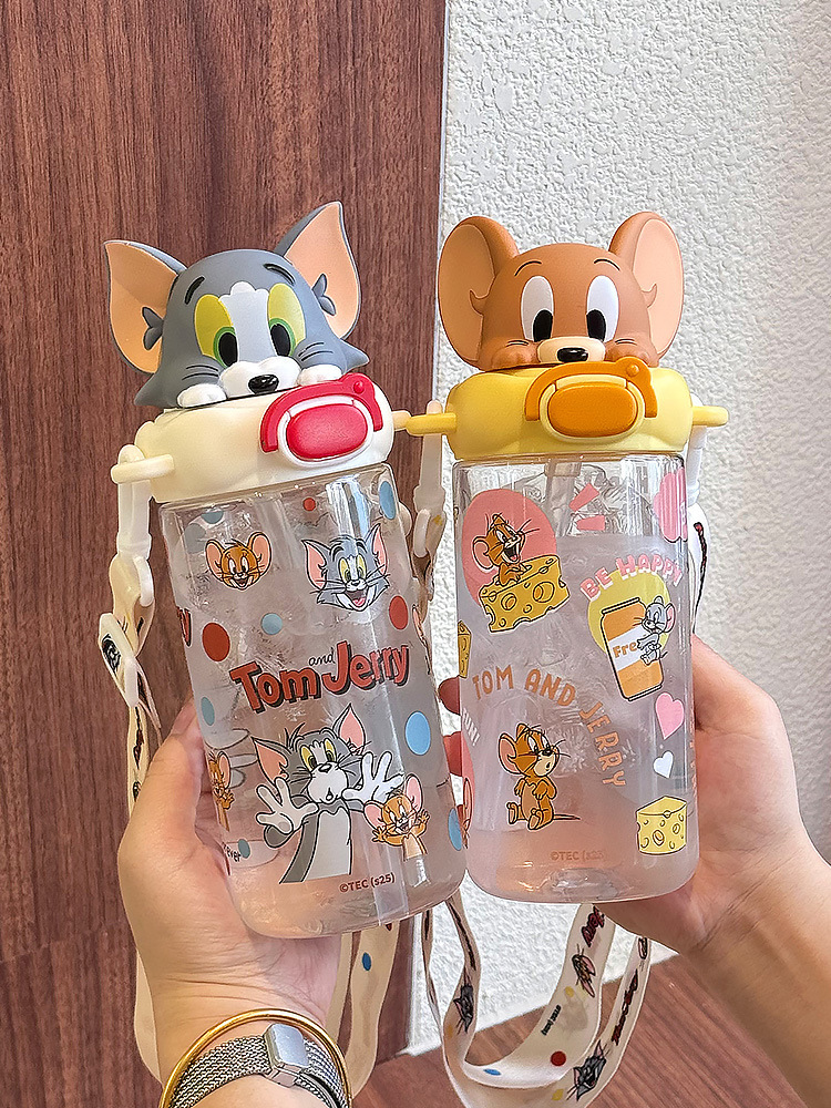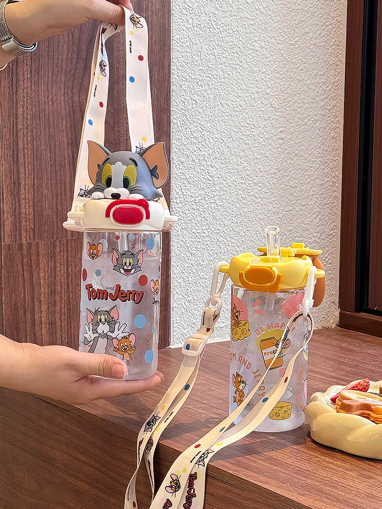 토끼와 고양이 어린이 물컵 소년 소녀 크로스바디 트라이탄 고온 방지 컵 초등학생 유치원