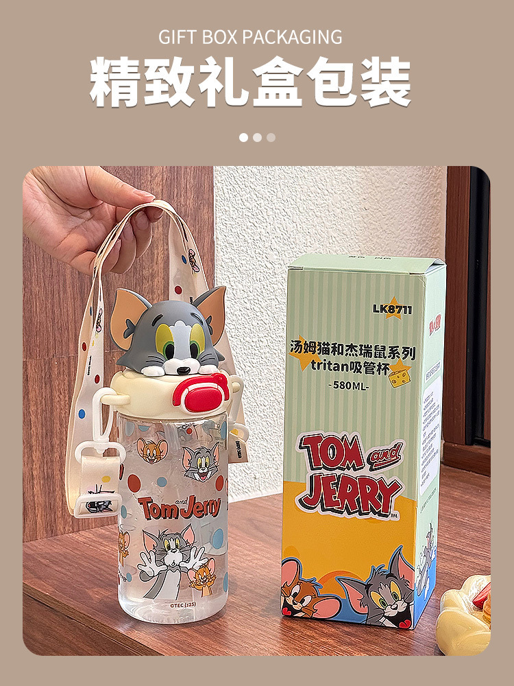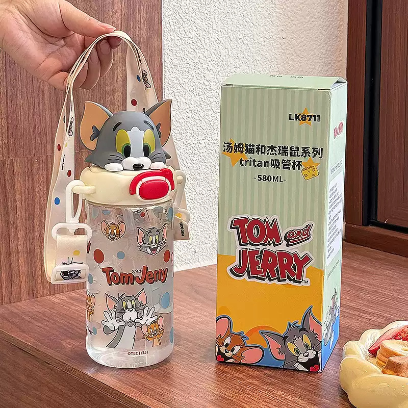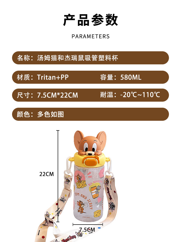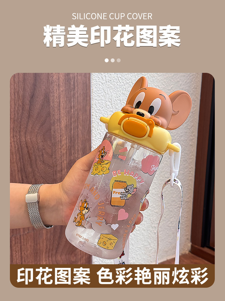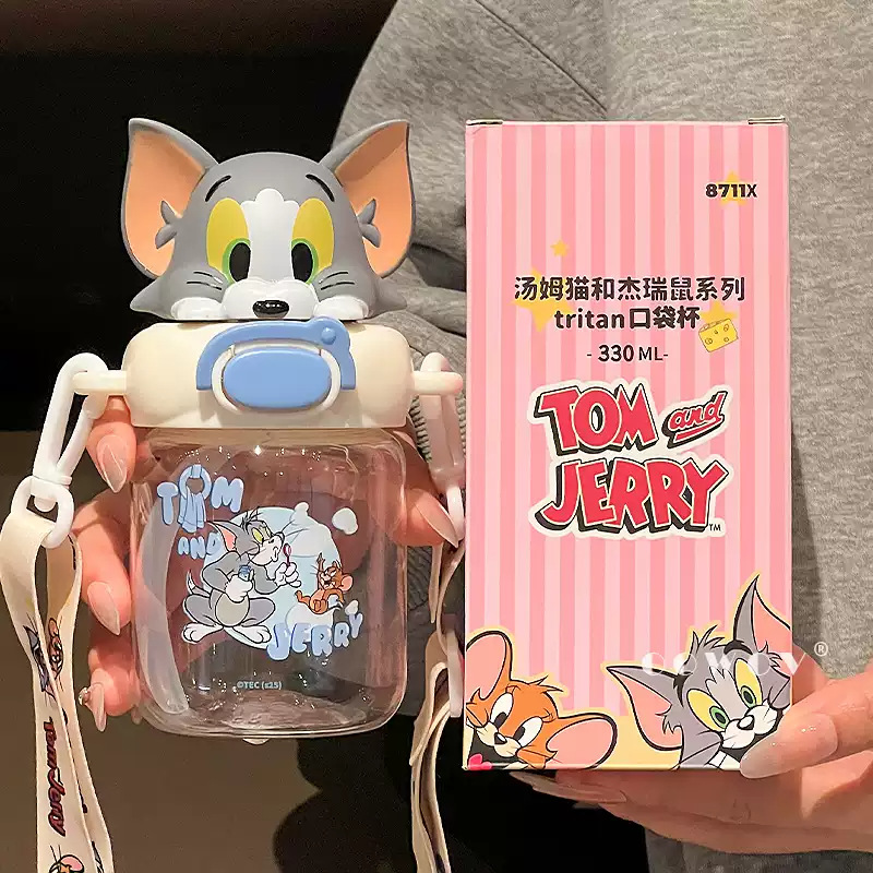 토끼와 고양이 어린이 물컵 소년 소녀 크로스바디 트라이탄 고온 방지 컵 초등학생 유치원