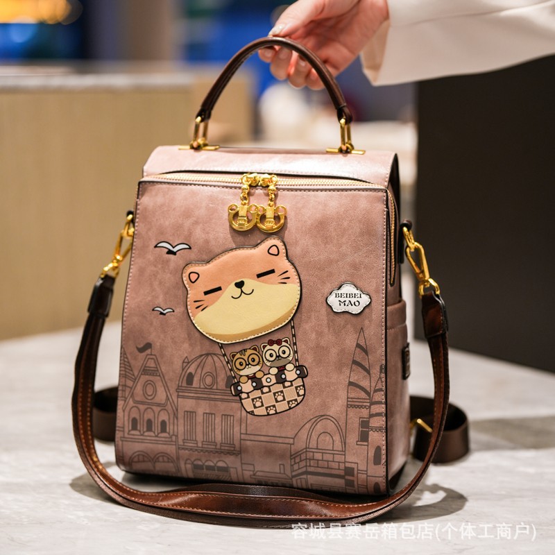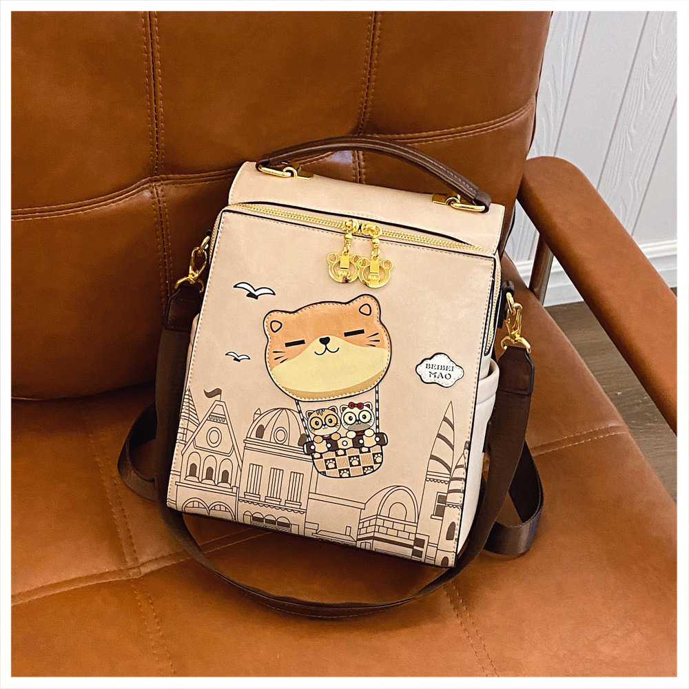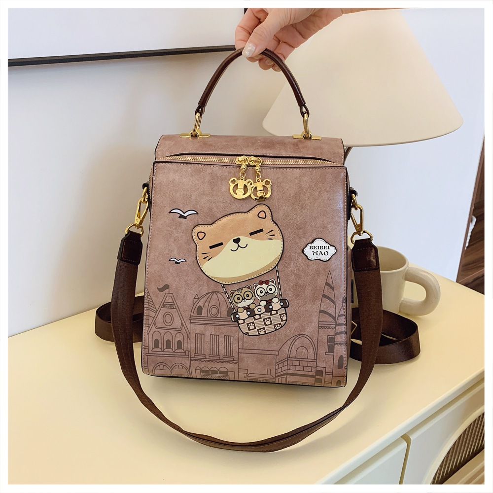 2025 새로운 귀여운 만화 상자 가방 곰 휴대용 작은 광장 가방 유행 올 매치 와이드 어깨 스트랩 어깨 배낭