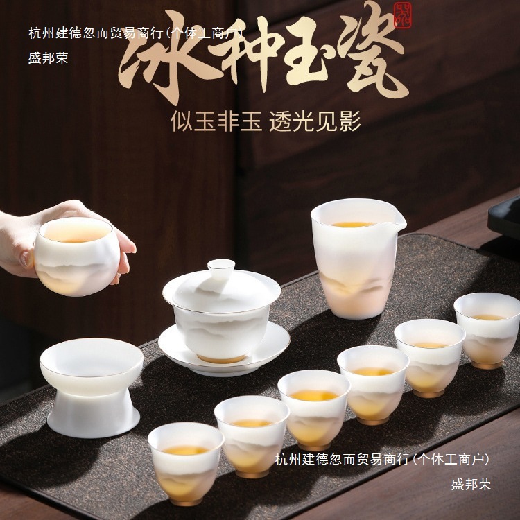 마스터 양 지방 옥 화이트 도자기 차 세트 세트 홈 라이트 럭셔리 2024 새로운 스타일 가이 그릇 쿵푸 차 선물 상자스토어 가기