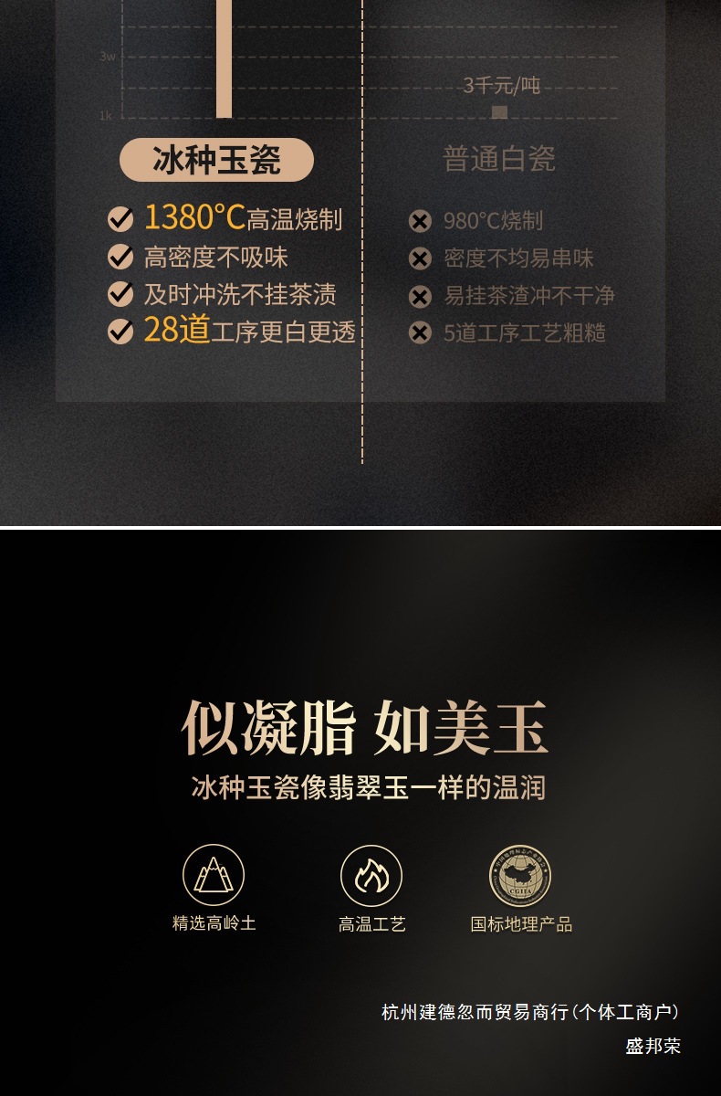 • 1【유약】루이 가이완 양고기 지방 옥 도자기 수묵 세트 10개, 1-10