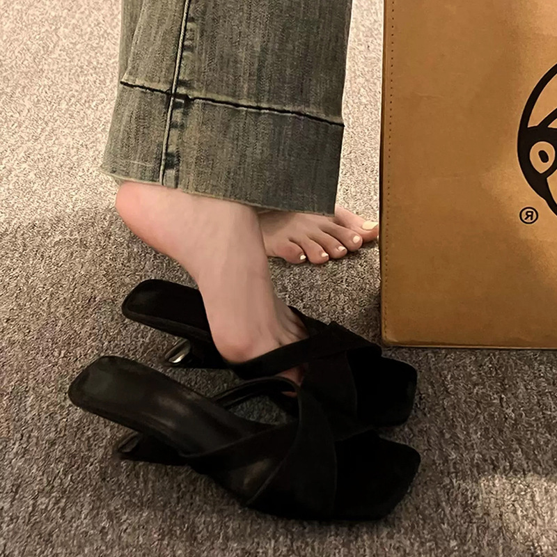 여성용 웨지 하이힐 샌들 2025 스커트가 있는 새로운 여름 스타일 프렌치 스타일 여성용 두꺼운 굽 샌들 여름 아우터웨어