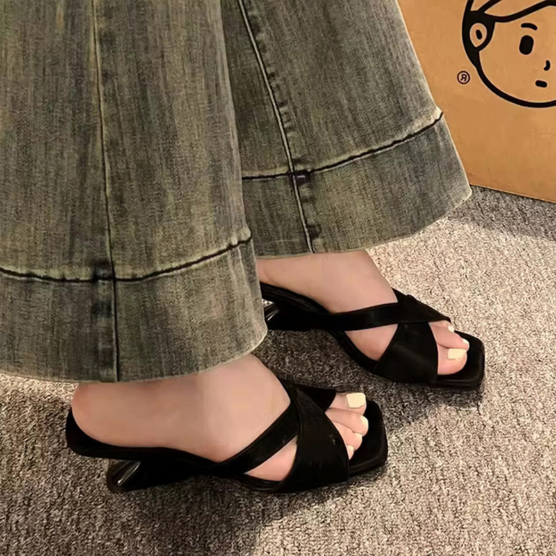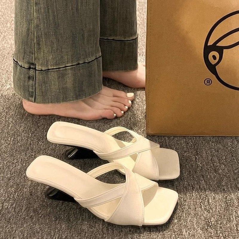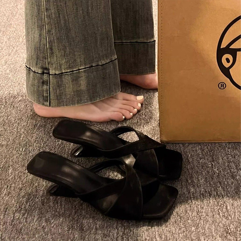 여성용 웨지 하이힐 샌들 2025 스커트가 있는 새로운 여름 스타일 프렌치 스타일 여성용 두꺼운 굽 샌들 여름 아우터웨어스토어 가기