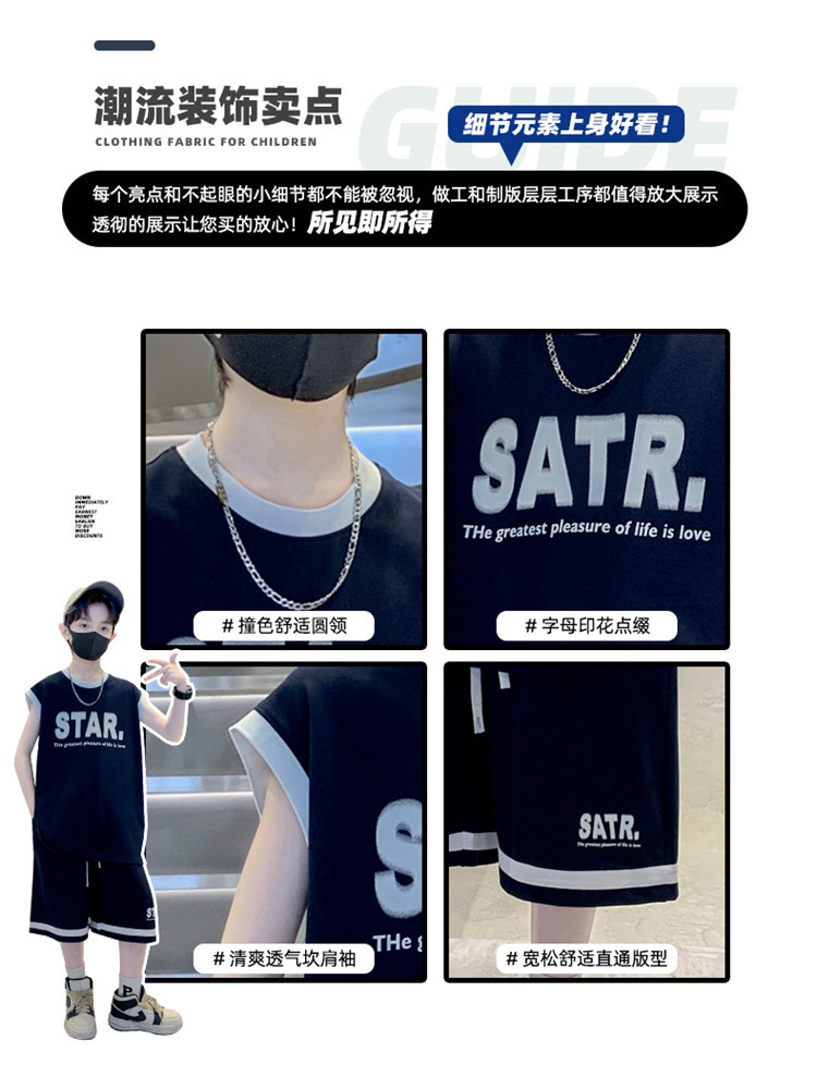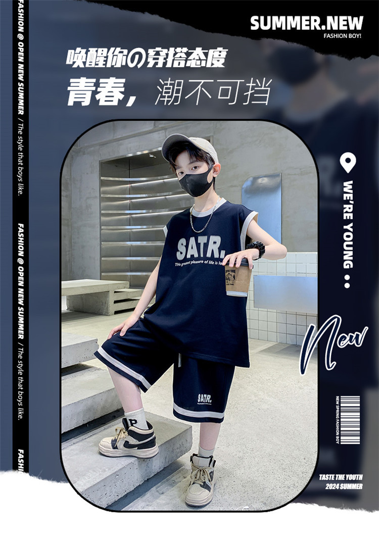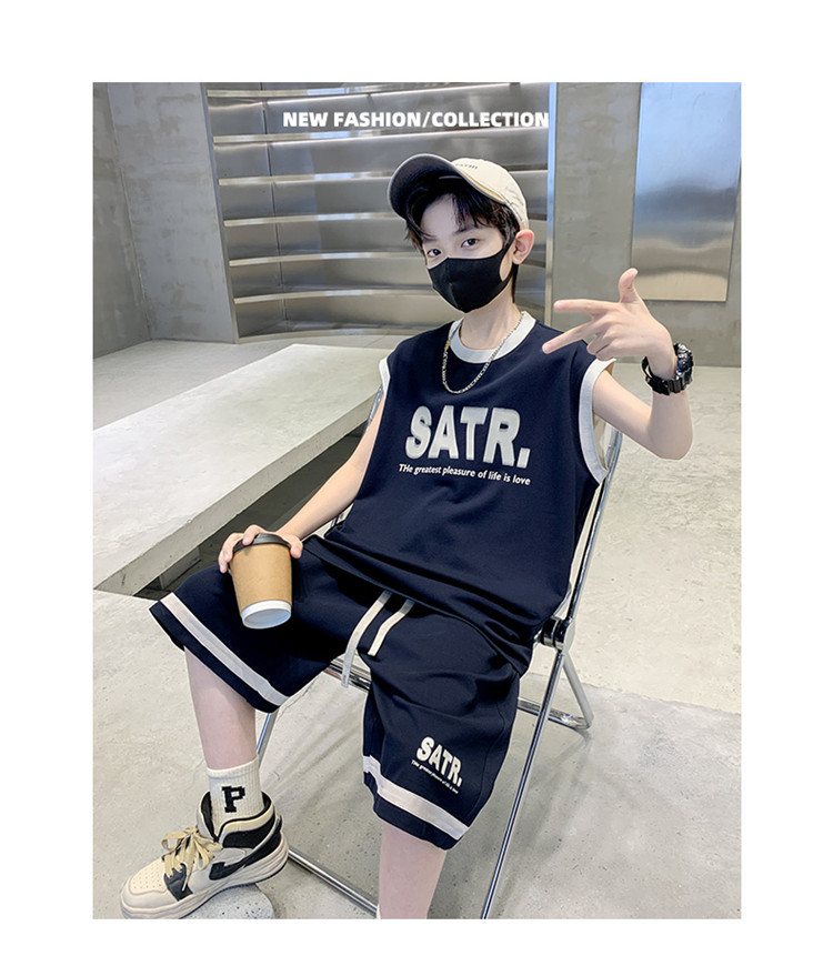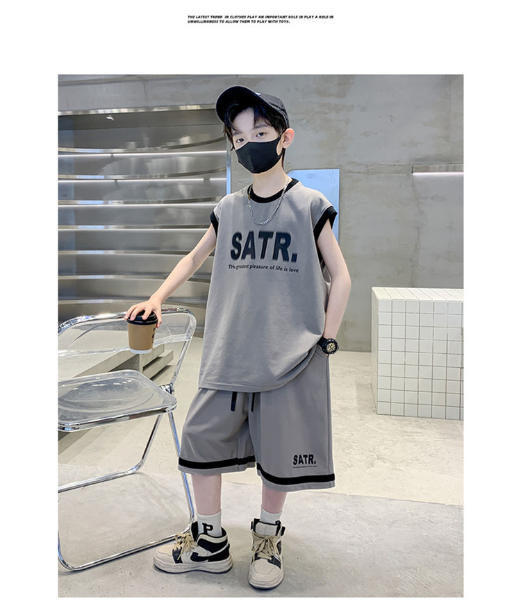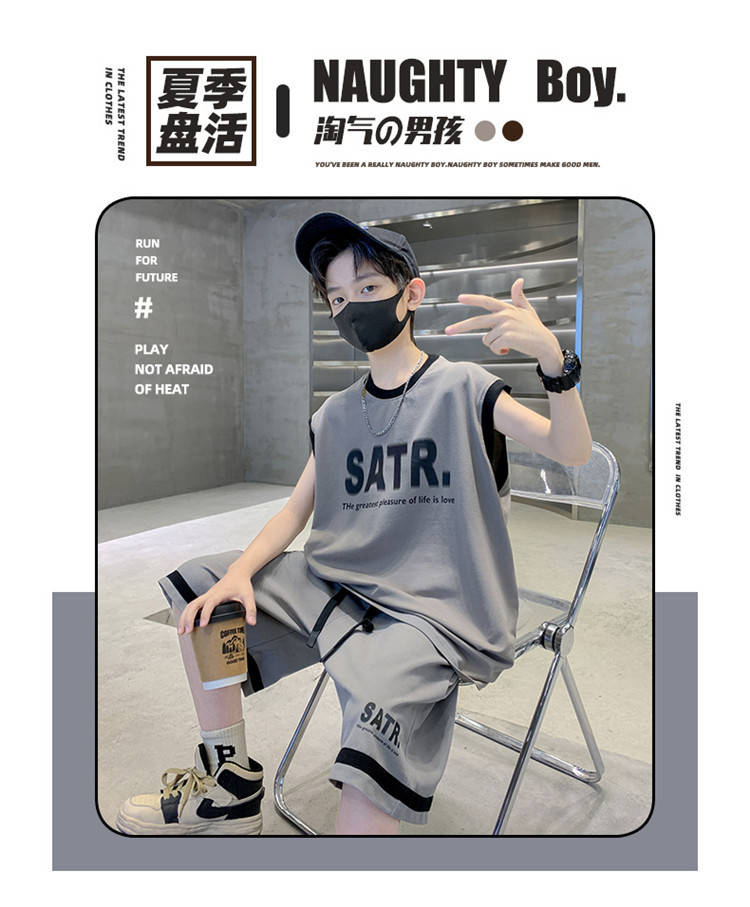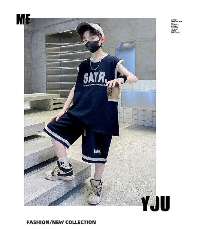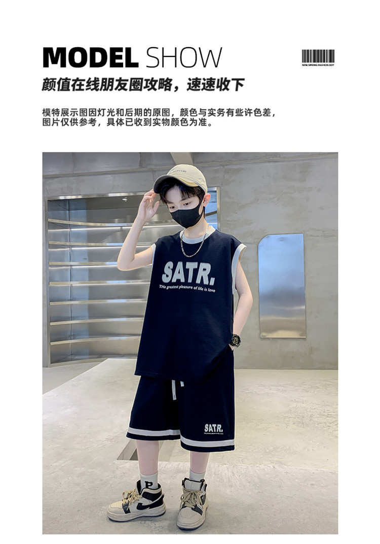 남아 정장, 여름 의류, 아동 스포츠 조끼, 민소매 반바지, 중대형 아동복, 캐주얼 남아 신상 얇은 의류스토어 가기