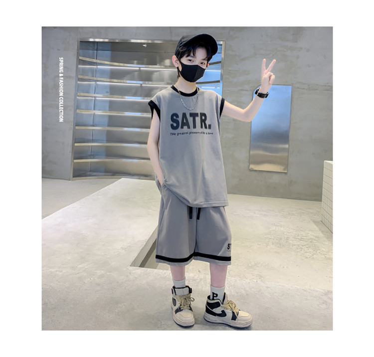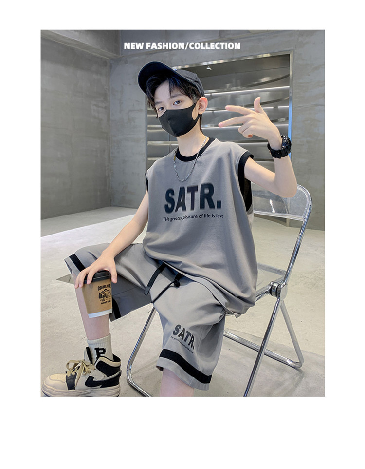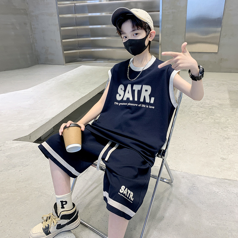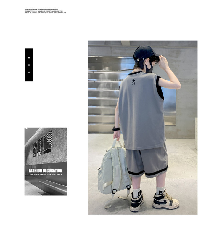 남아 정장, 여름 의류, 아동 스포츠 조끼, 민소매 반바지, 중대형 아동복, 캐주얼 남아 신상 얇은 의류