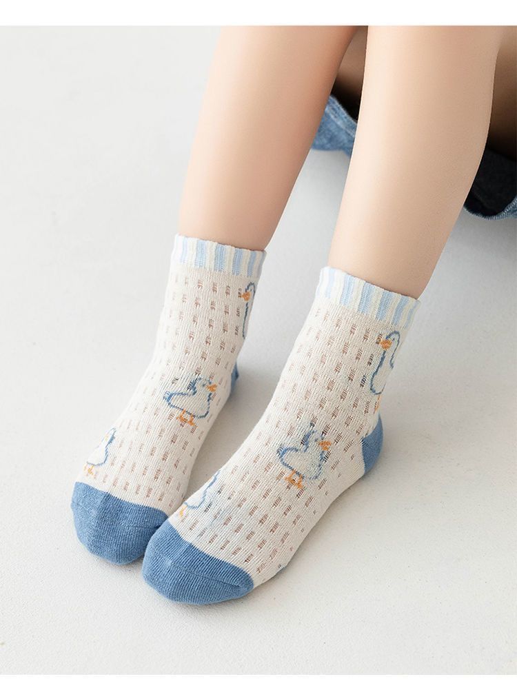 여름 얇은 순수 코튼 메쉬 소년 양말 중간 튜브 어린이 양말 소년 통기성 땀 흡수 스포츠 학생 양말 여성