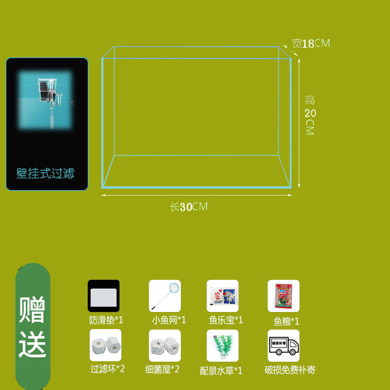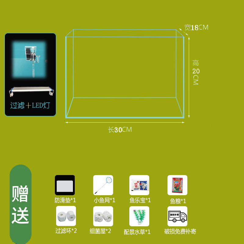 • 30*18*20cm 베어 탱크+LED 조명+필터링 표준 패키지