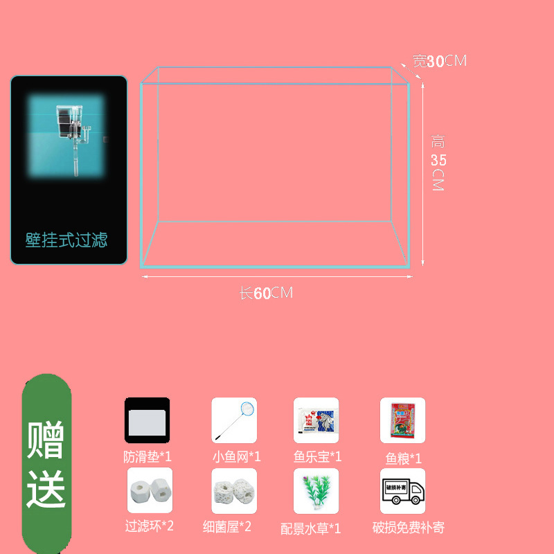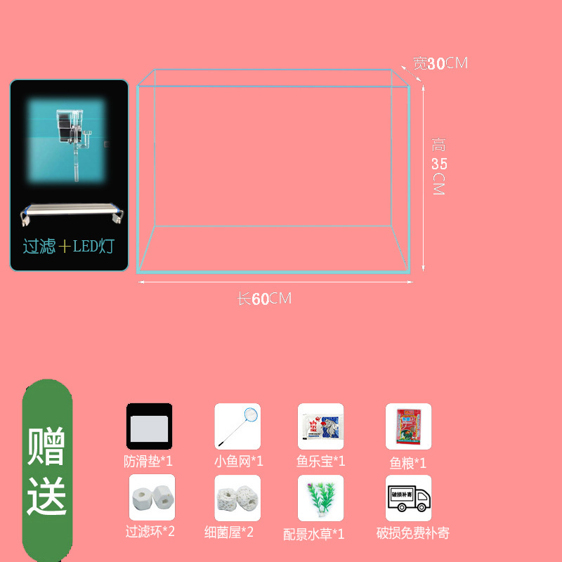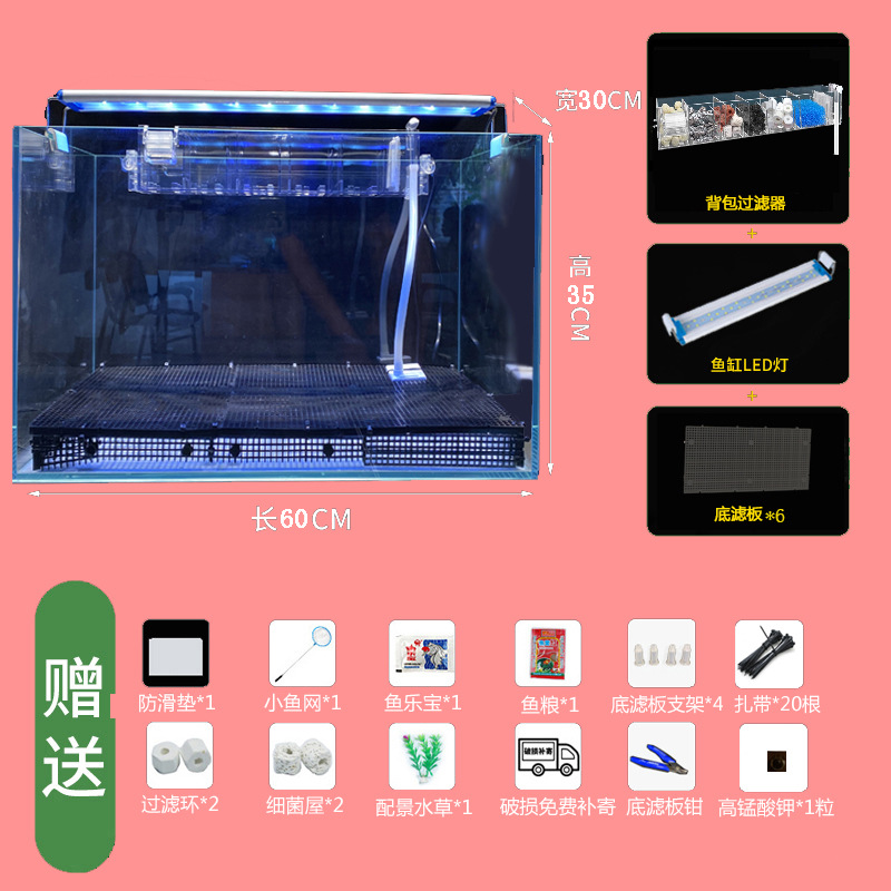 • 60*30*35cm 베어 탱크+LED 조명+필터 표준 패키지