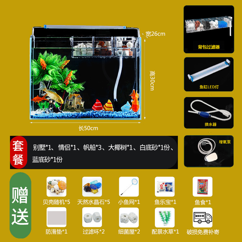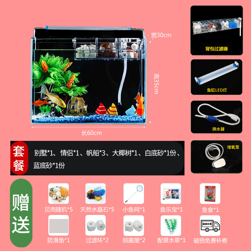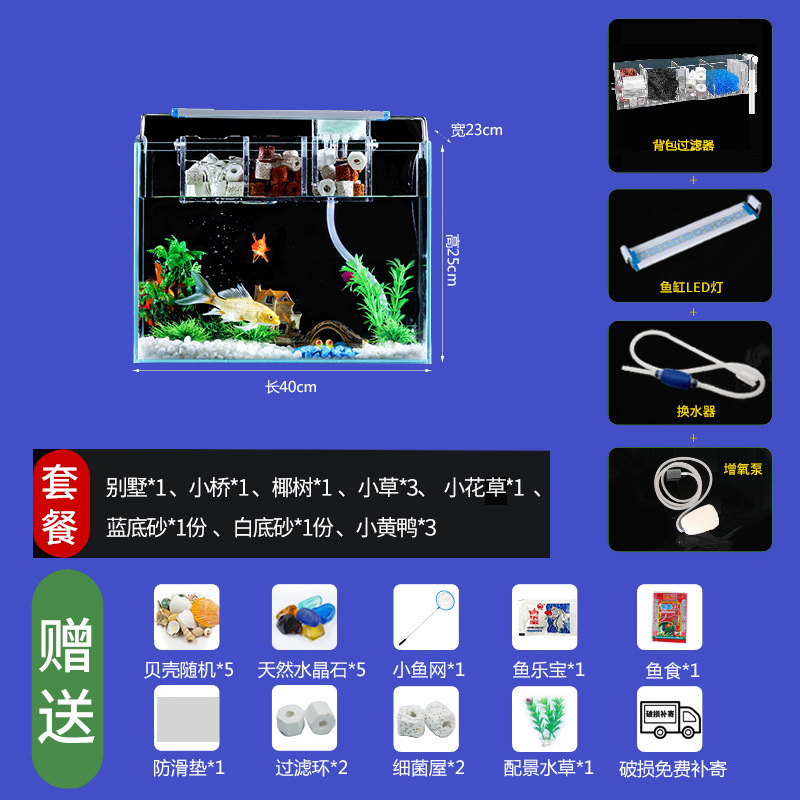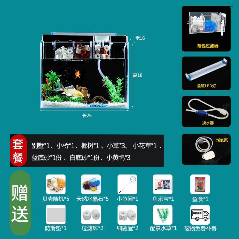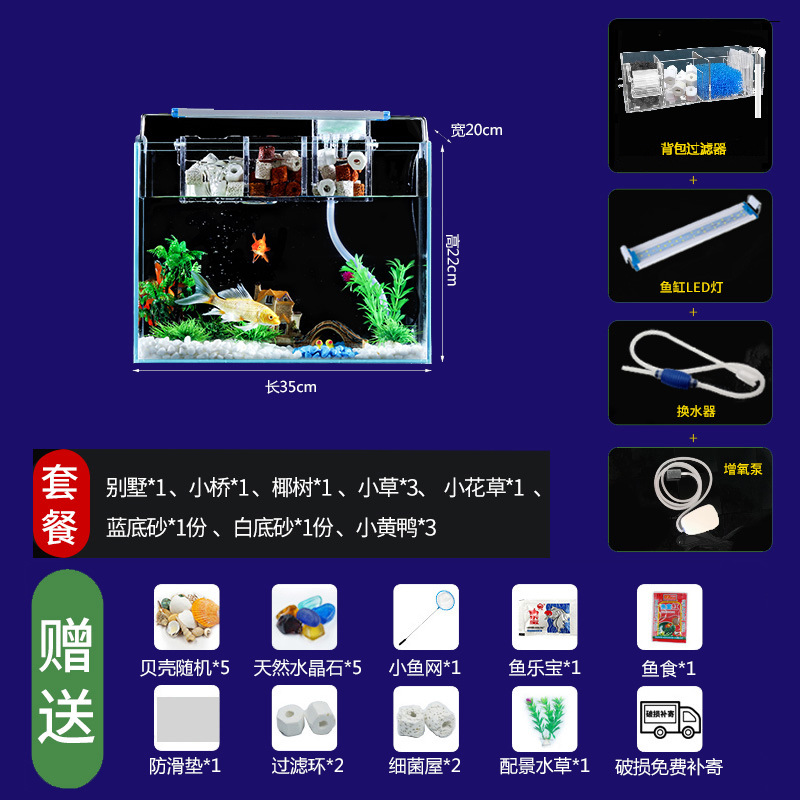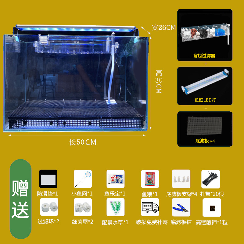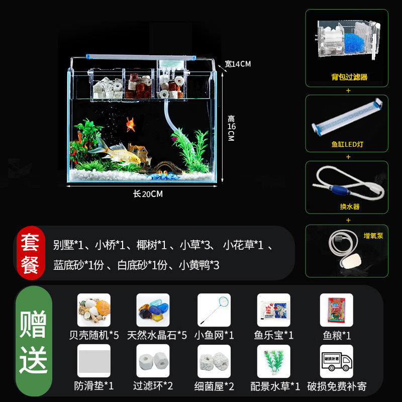 Jingjing 슈퍼 화이트 물고기 탱크 직사각형 거실 사무실 책상 작은 betta 금붕어 수생 식물 생태 조경 거북이 탱크스토어 가기