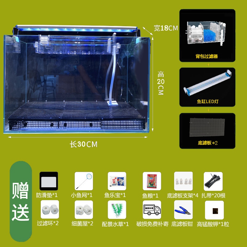 • 30*18*20cm 베어 탱크 + LED + 바닥 모래 여과 시스템, 생태 조경을 위한 첫 번째 선택