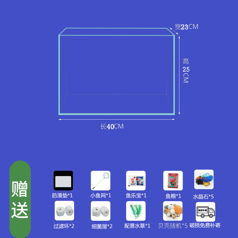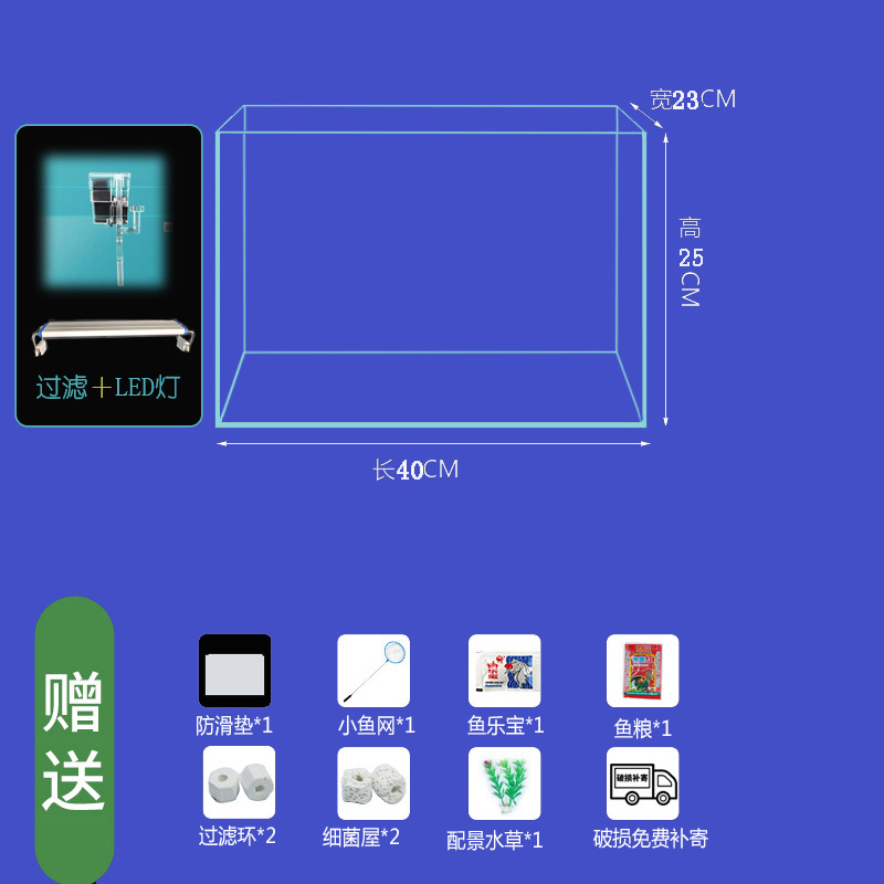 • 40*24*25cm 베어 탱크+LED 조명+필터링 표준 패키지