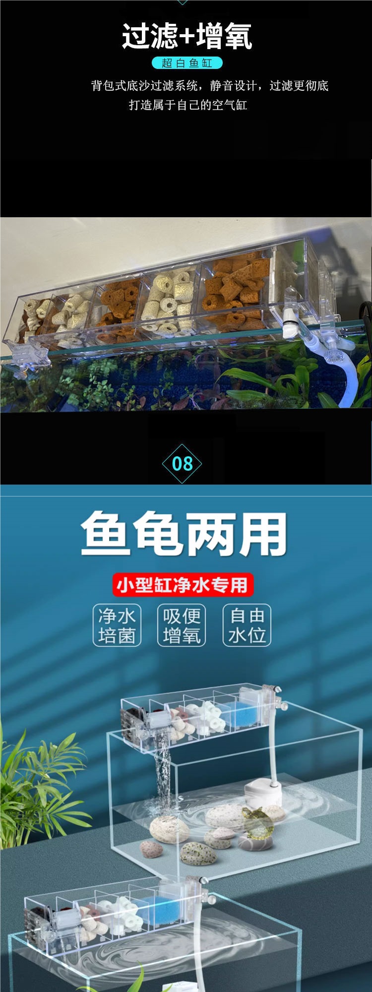 • 35*21*23cm 베어 탱크 + LED + 바닥 모래 여과 시스템, 생태 조경을 위한 첫 번째 선택