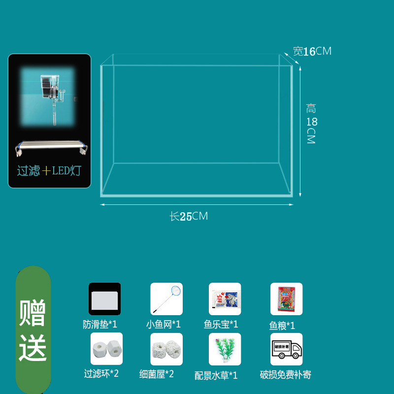 • 25*16*18cm 베어 탱크+LED 조명+필터 표준 패키지