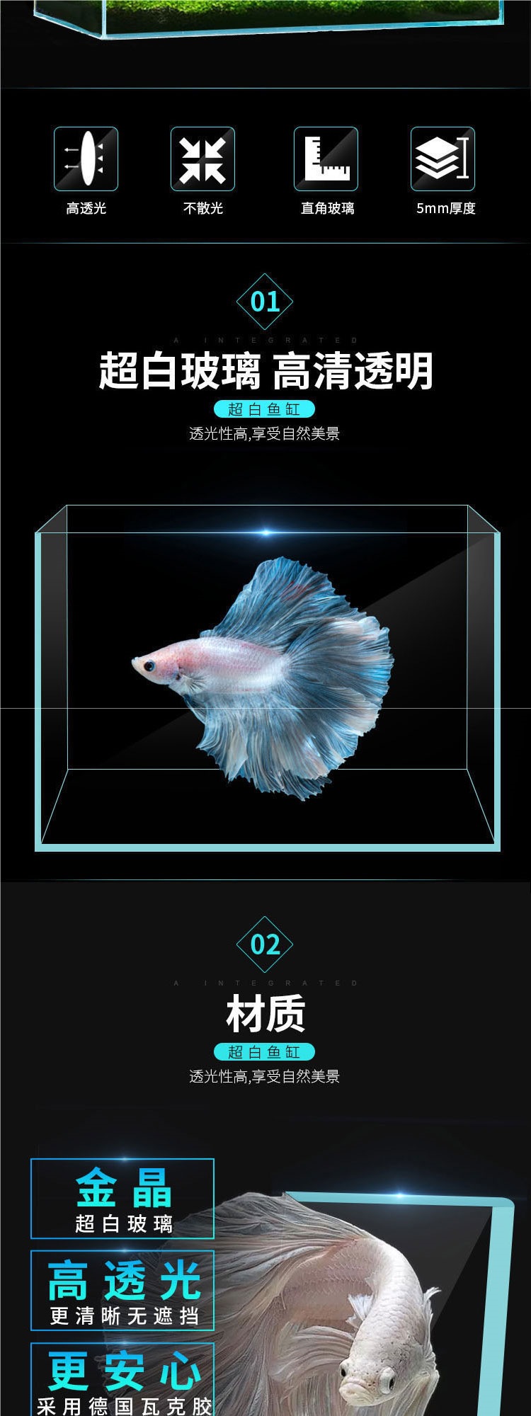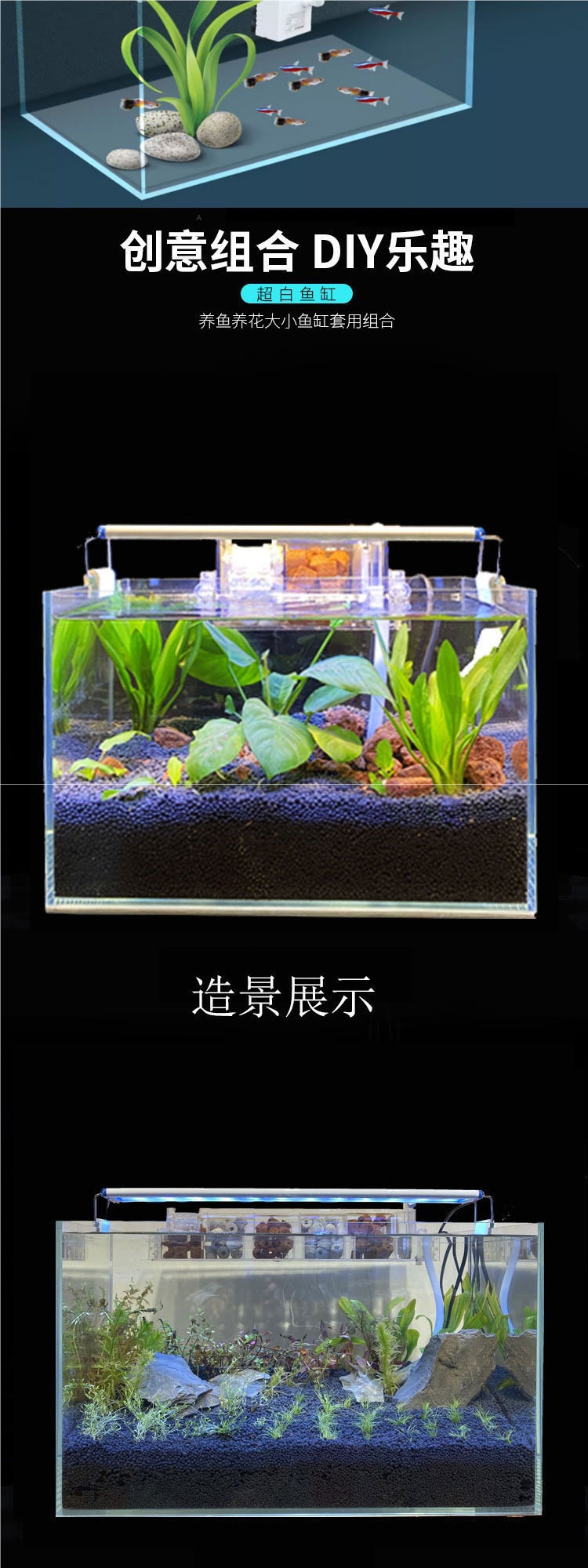 Jingjing 슈퍼 화이트 물고기 탱크 직사각형 거실 사무실 책상 작은 betta 금붕어 수생 식물 생태 조경 거북이 탱크