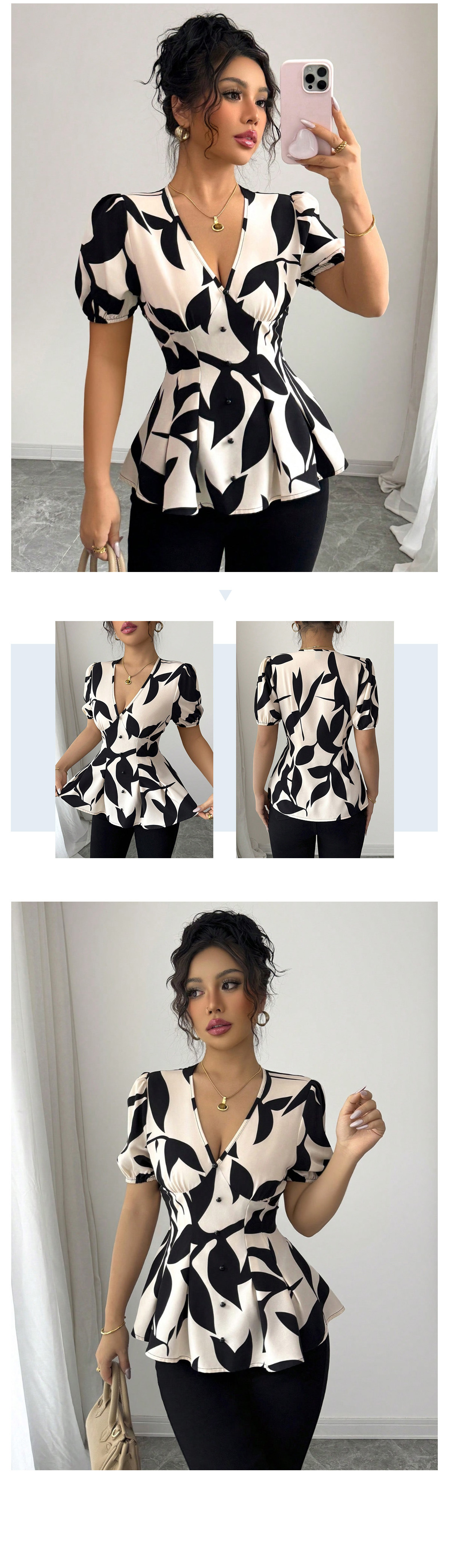 유럽 및 미국 해외 여성복 2025년 여름 신상 여성 상의 프린트 셔츠스토어 가기