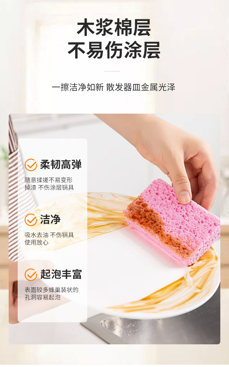 무료 배송 가정용 흡수성 목재 펄프 면 그릇 세척 스폰지 주방 청소 와셔 브러시 그릇 청소 냄비 헝겊 기름없는 스폰지스토어 가기