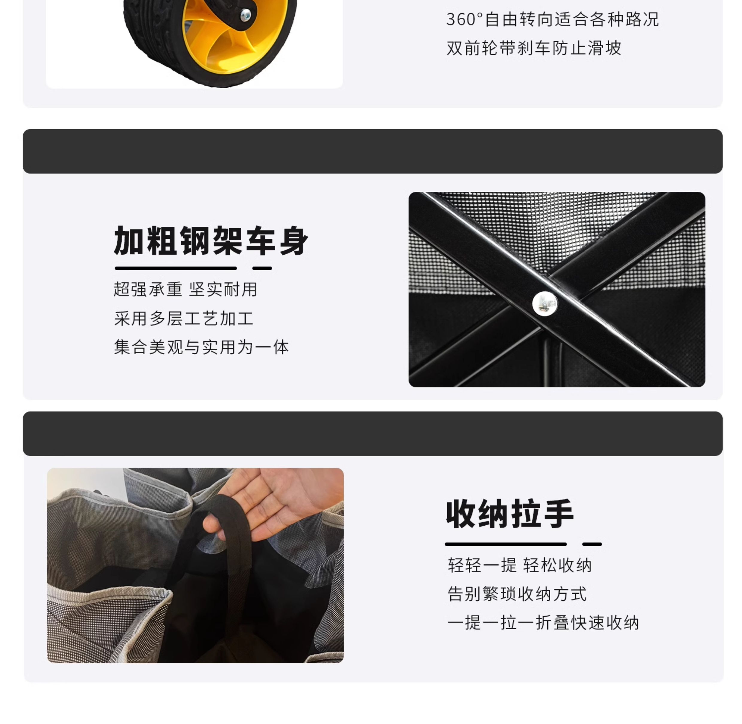 • [럭셔리 업그레이드 모델] 슈퍼 내하중 + 두꺼워진 올스틸 바디 + 더블 브레이크 유니버설 휠