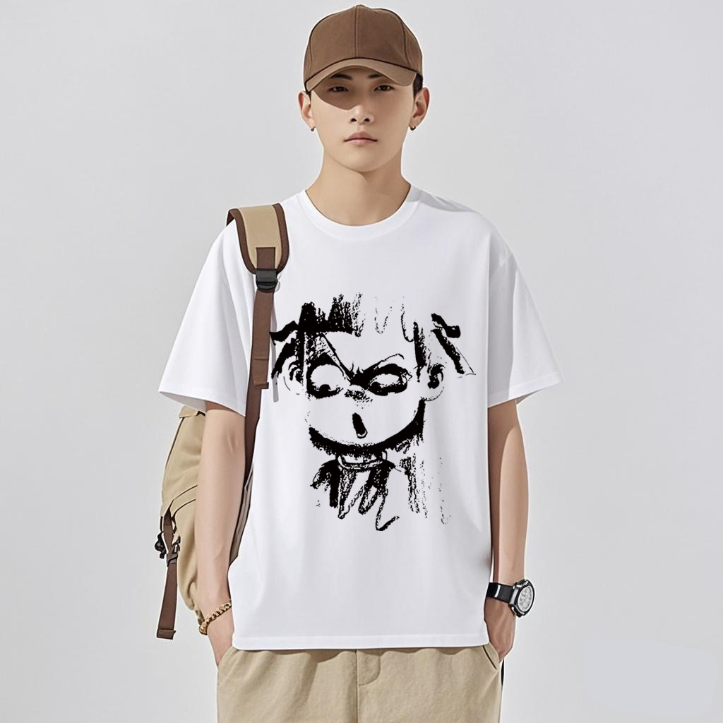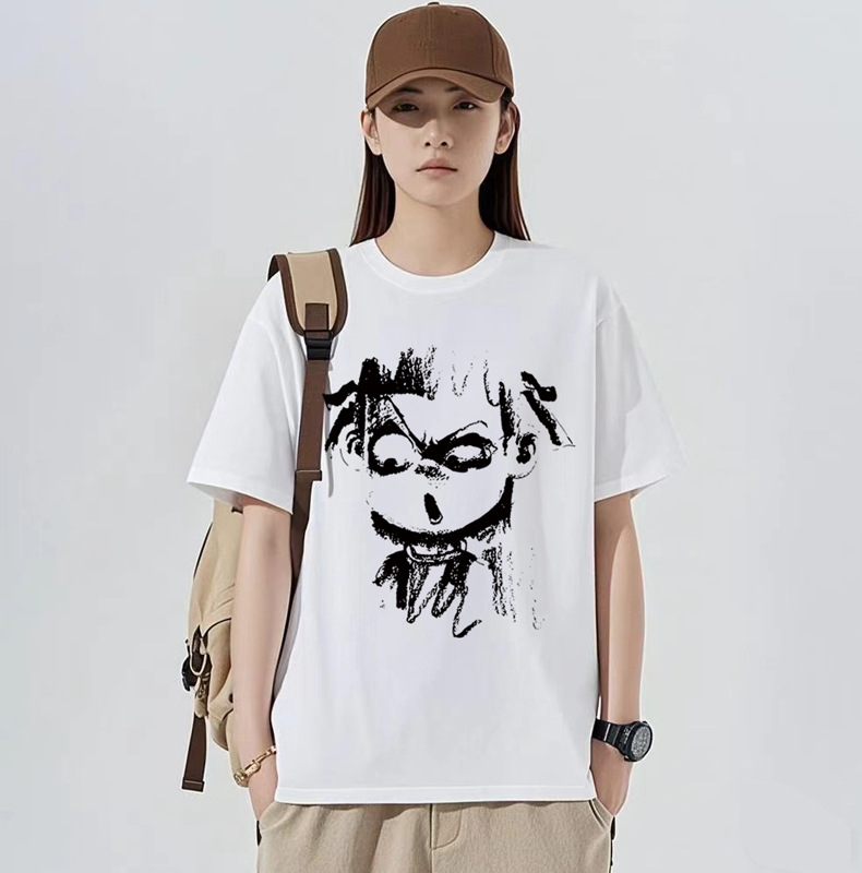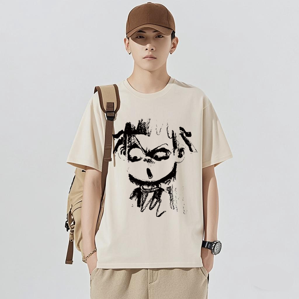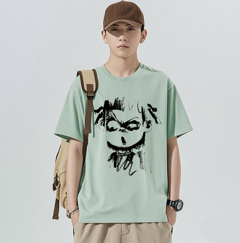 반팔 티셔츠 남성용 봄 트렌디 브랜드 남성 홍콩 스타일 인쇄 10 대 퓨어 코튼 반소매 캐주얼 남성 자켓스토어 가기