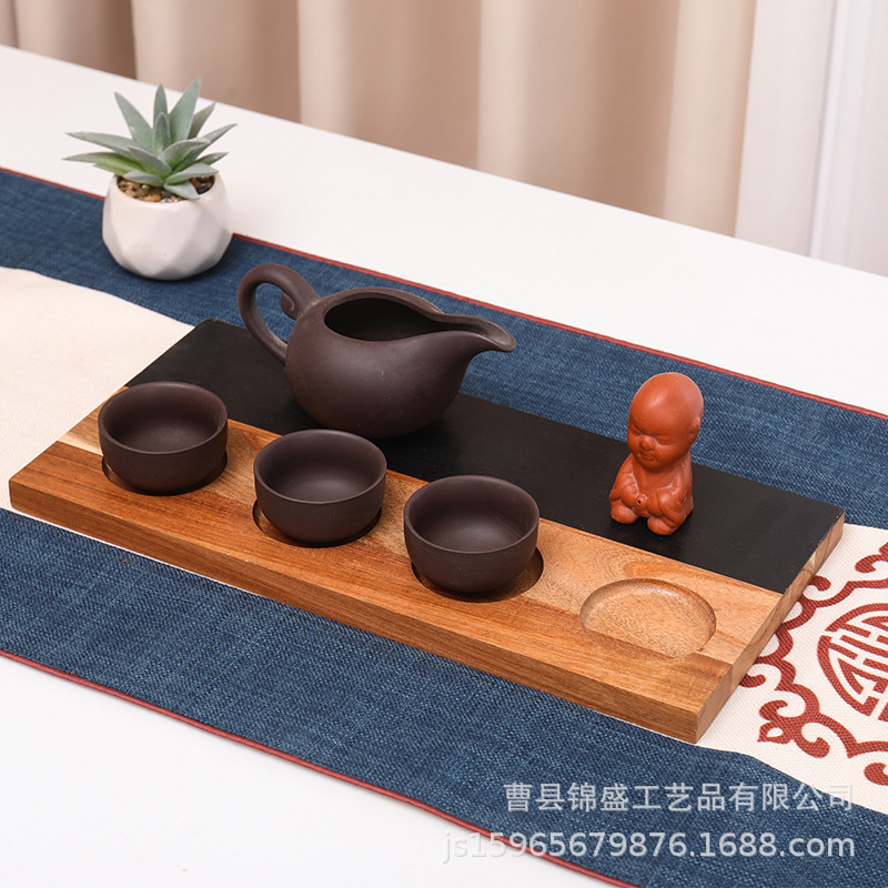 도매 단단한 나무 차 세트 트레이 데스크탑 사무실 찻집 창조적 인 차 보드 직사각형 나무 가정용 와인 유리 트레이스토어 가기