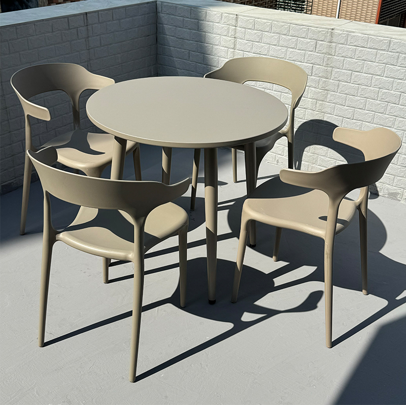 • [샴페인] 의자 4개 + 70cm 탄소강 원형 테이블