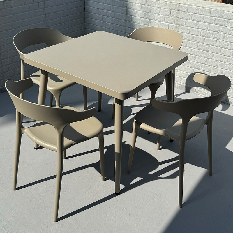 • [샴페인 컬러] 의자 4개 + 80*80cm 두께의 탄소강 사각 테이블