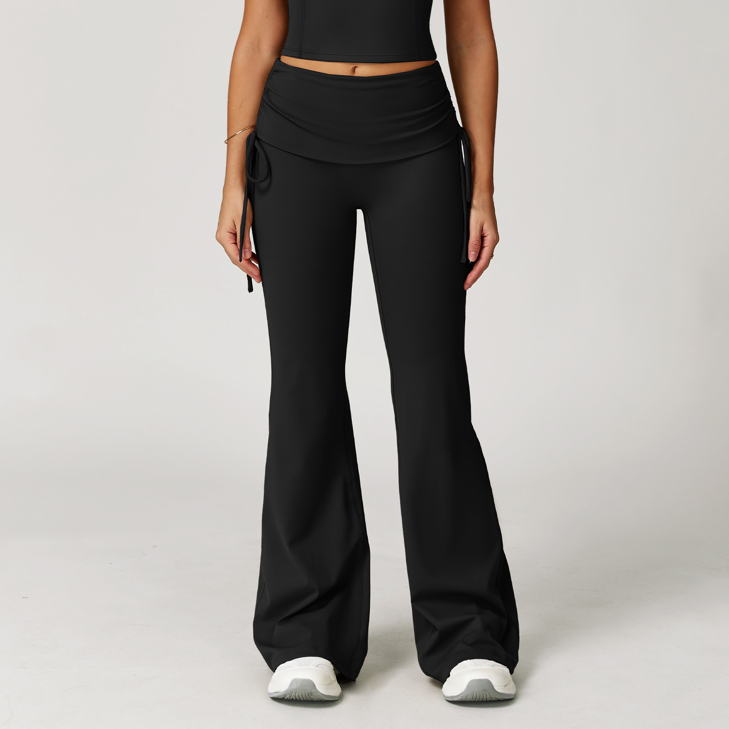 국경 간 접히는 높은 허리 파 바지 벌거 빛 발 슬리밍 바지 야외 달리기 피트니스 스포츠 플래 팬츠 3055스토어 가기