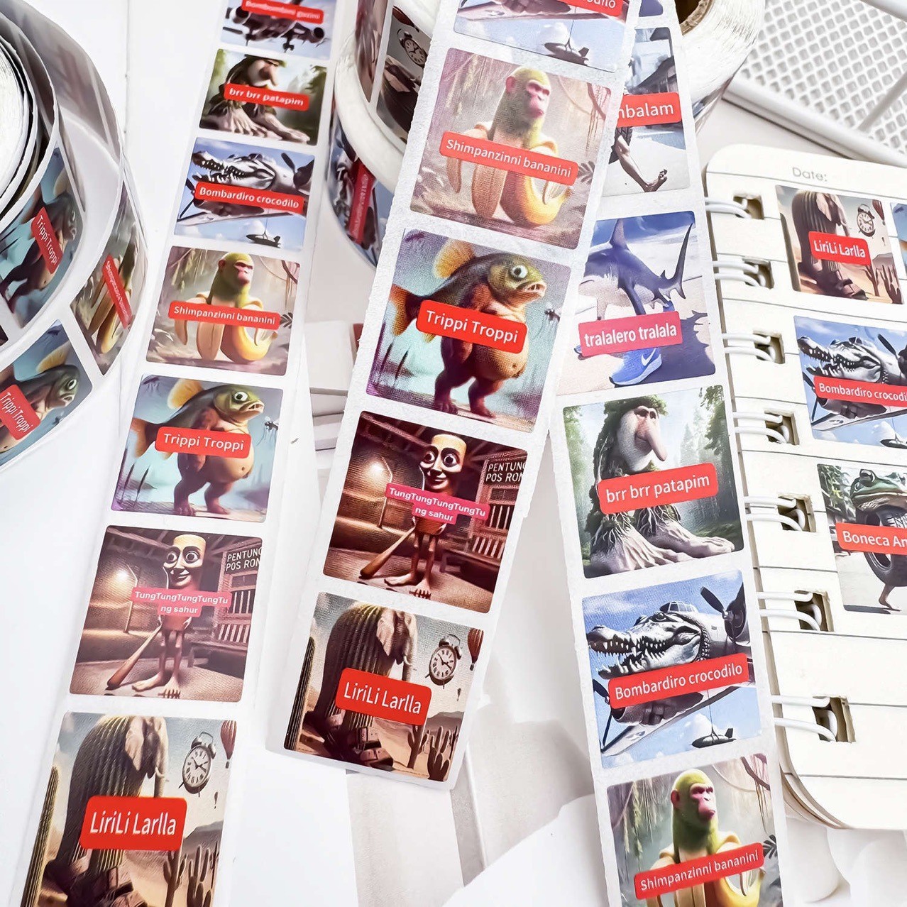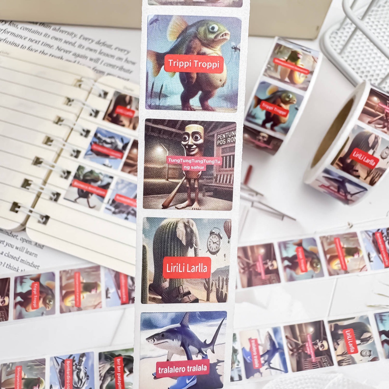 500 스티커 미국 산과 바다 경전 재미있는 추상 모래 조각 스티커 의미 알 수없는 창조적 인 재미 장식 방수 스티커스토어 가기