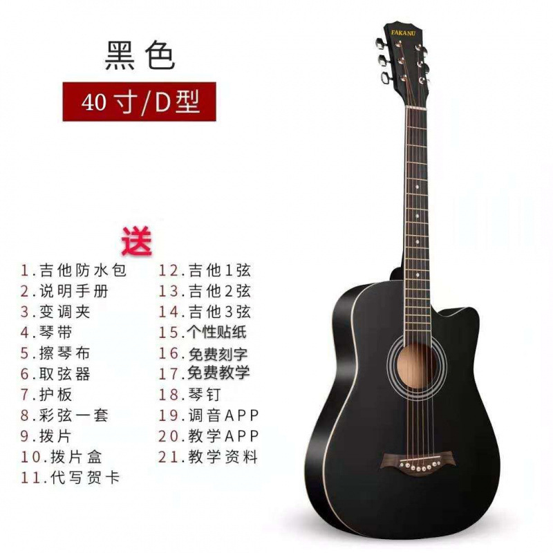 • [40inch - 수제 광택 베니어] 블랙 - [전기 박스 모델] 액세서리 풀 세트 + 기타 가방 + 전자 튜너