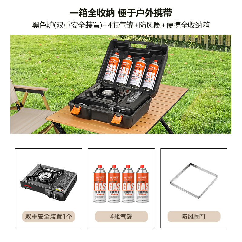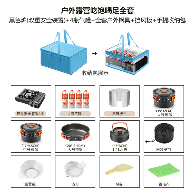 • [텐트캠핑으로 집에 갈 필요가 없습니다] 이중 안전장치 블랙 스토브 + 가스탱크 4개 + 아웃도어 냄비 세트 + 바람막이 + 휴대용 수납가방