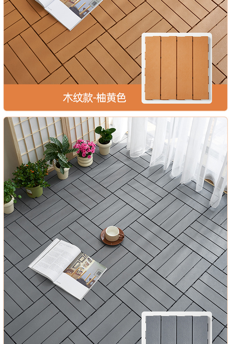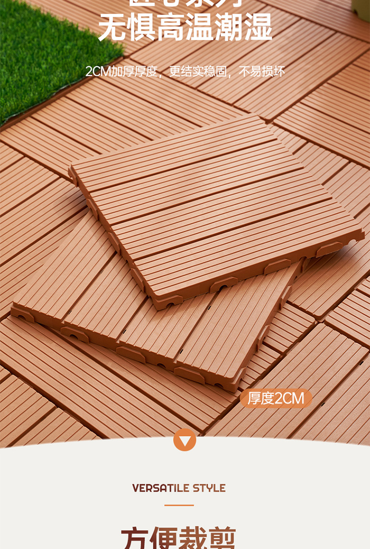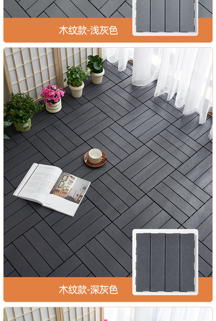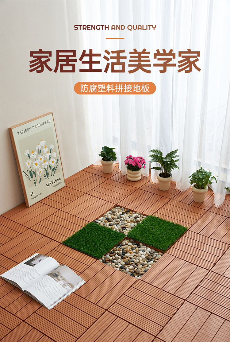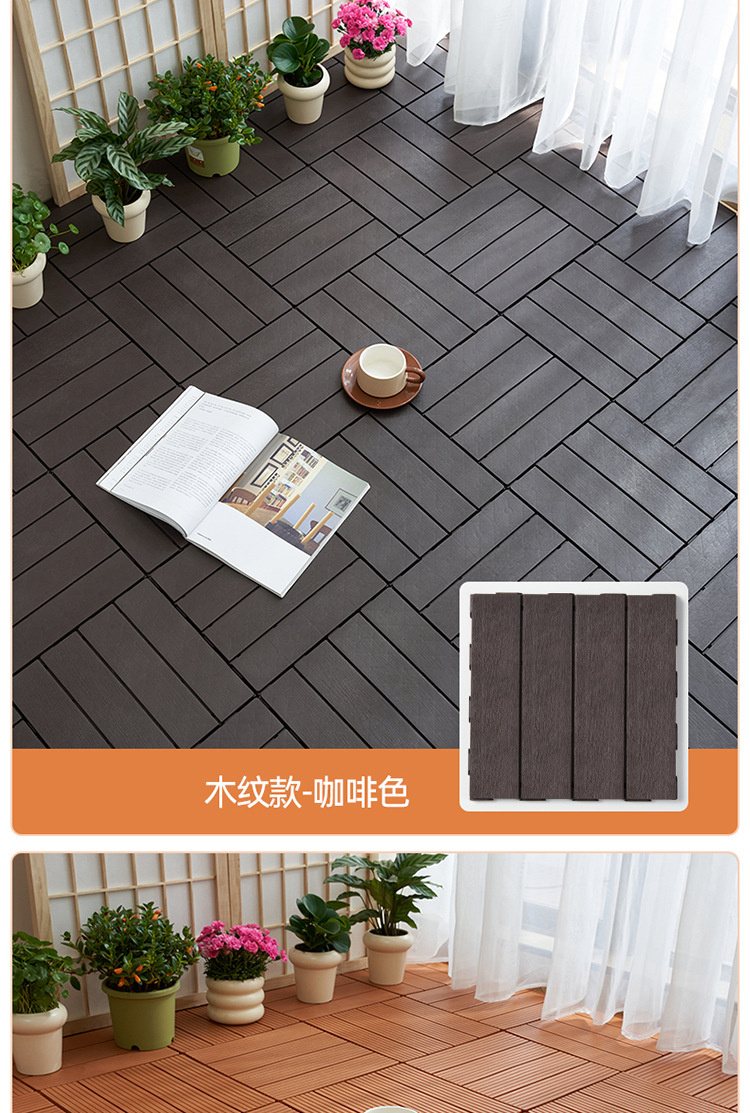 플라스틱 나무 바닥 마당 정원 발코니 야외 테라스 접합 내마모성 미끄럼 방지 플라스틱 바닥 제조 업체 도매스토어 가기