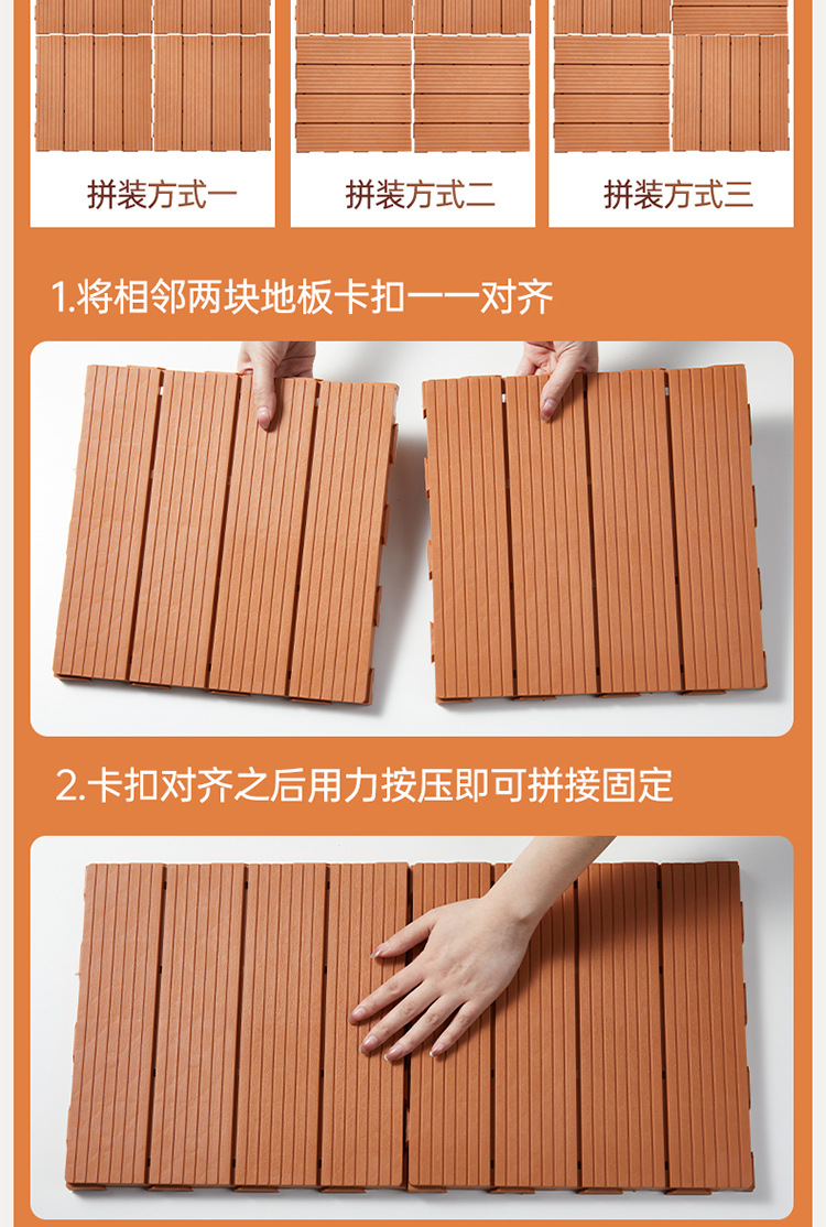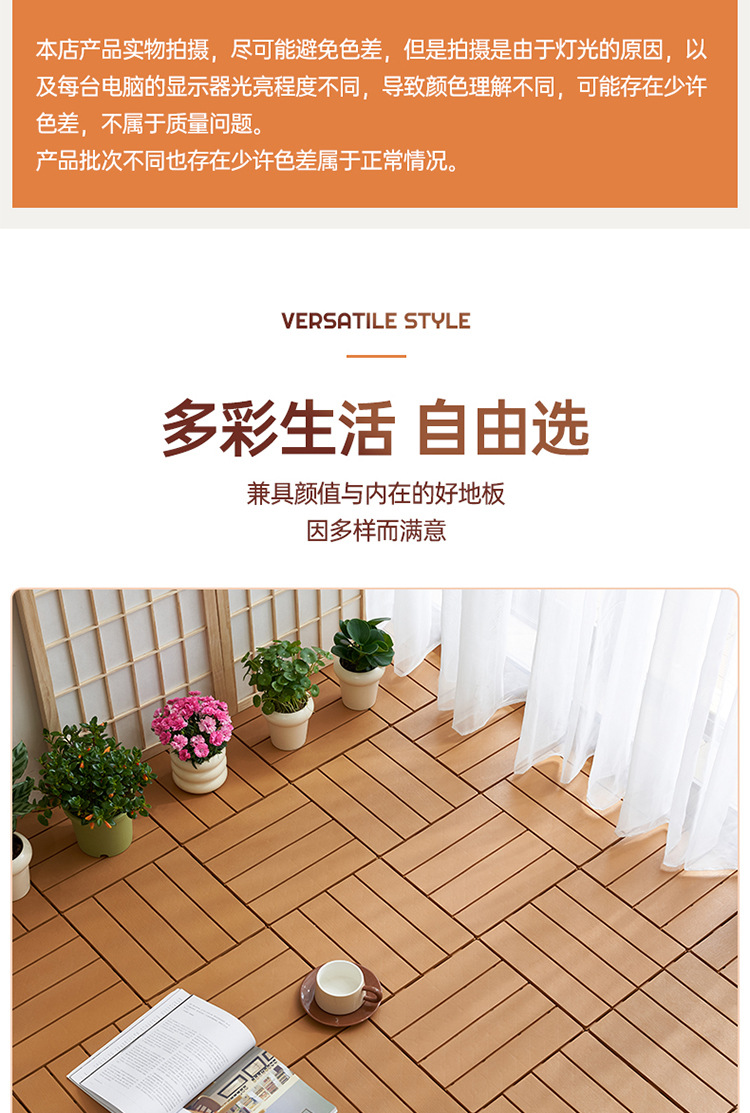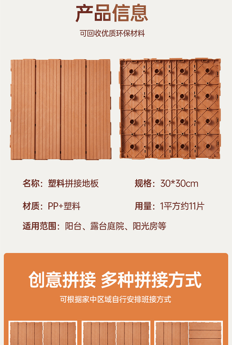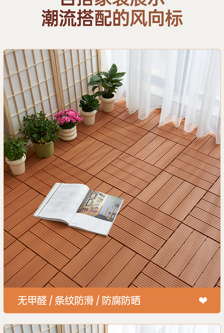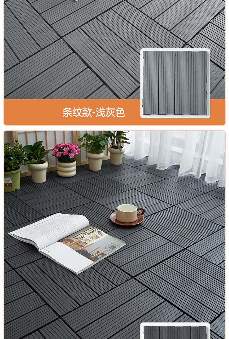 플라스틱 나무 바닥 마당 정원 발코니 야외 테라스 접합 내마모성 미끄럼 방지 플라스틱 바닥 제조 업체 도매스토어 가기